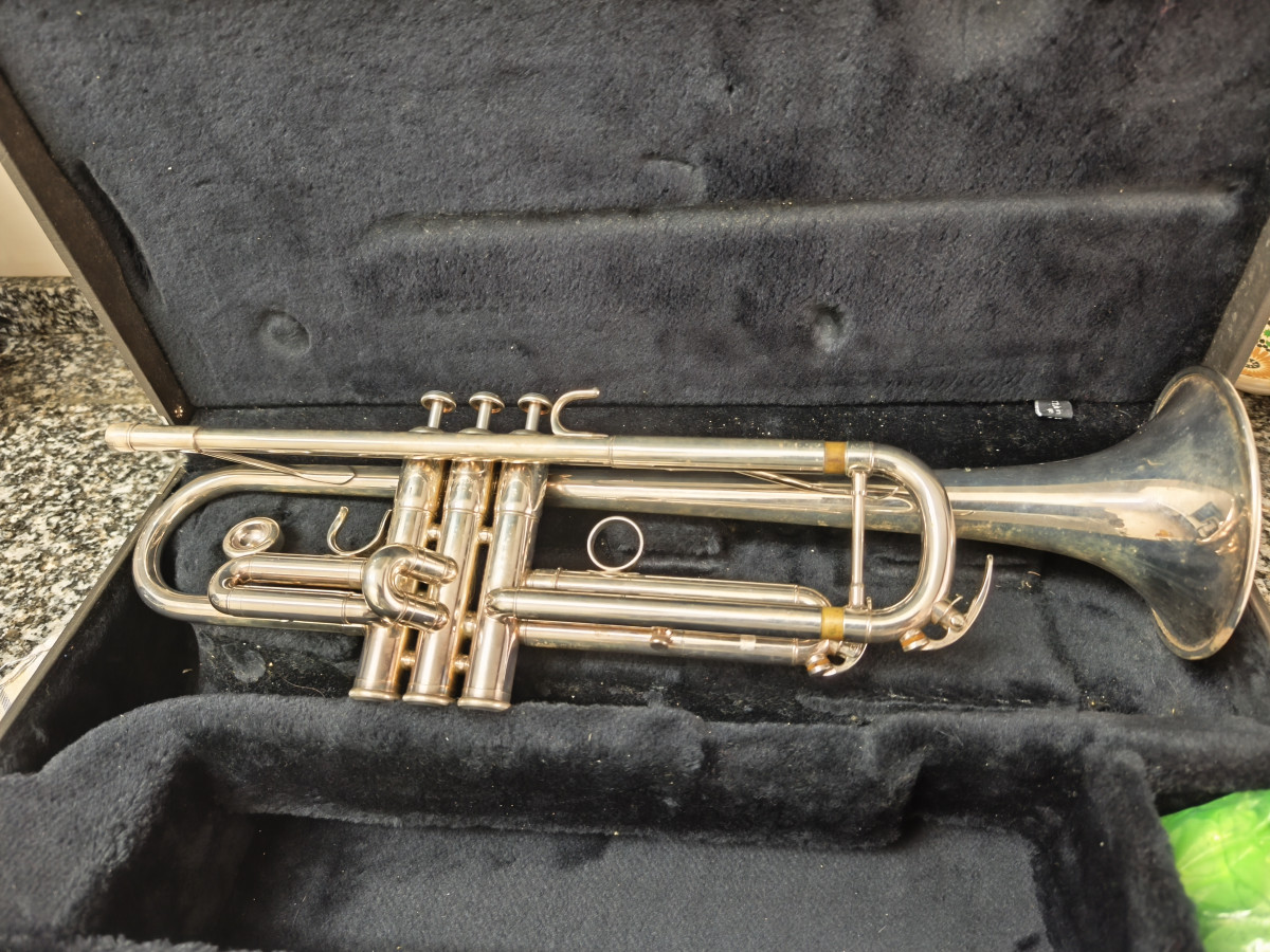 Trompeta en buen estado de conservación. Color plata Tipo Estándar El instrumento está perfectamente cuidado, con pistones y bombas que funcionan correctamente. Sonido limpio y brillante, peso ligero, perfecto para estudiantes de conservatorio como para músicos que busquen un instrumento fiable. Con su estuche Yamaha y algunos Extras. Sordina y otros