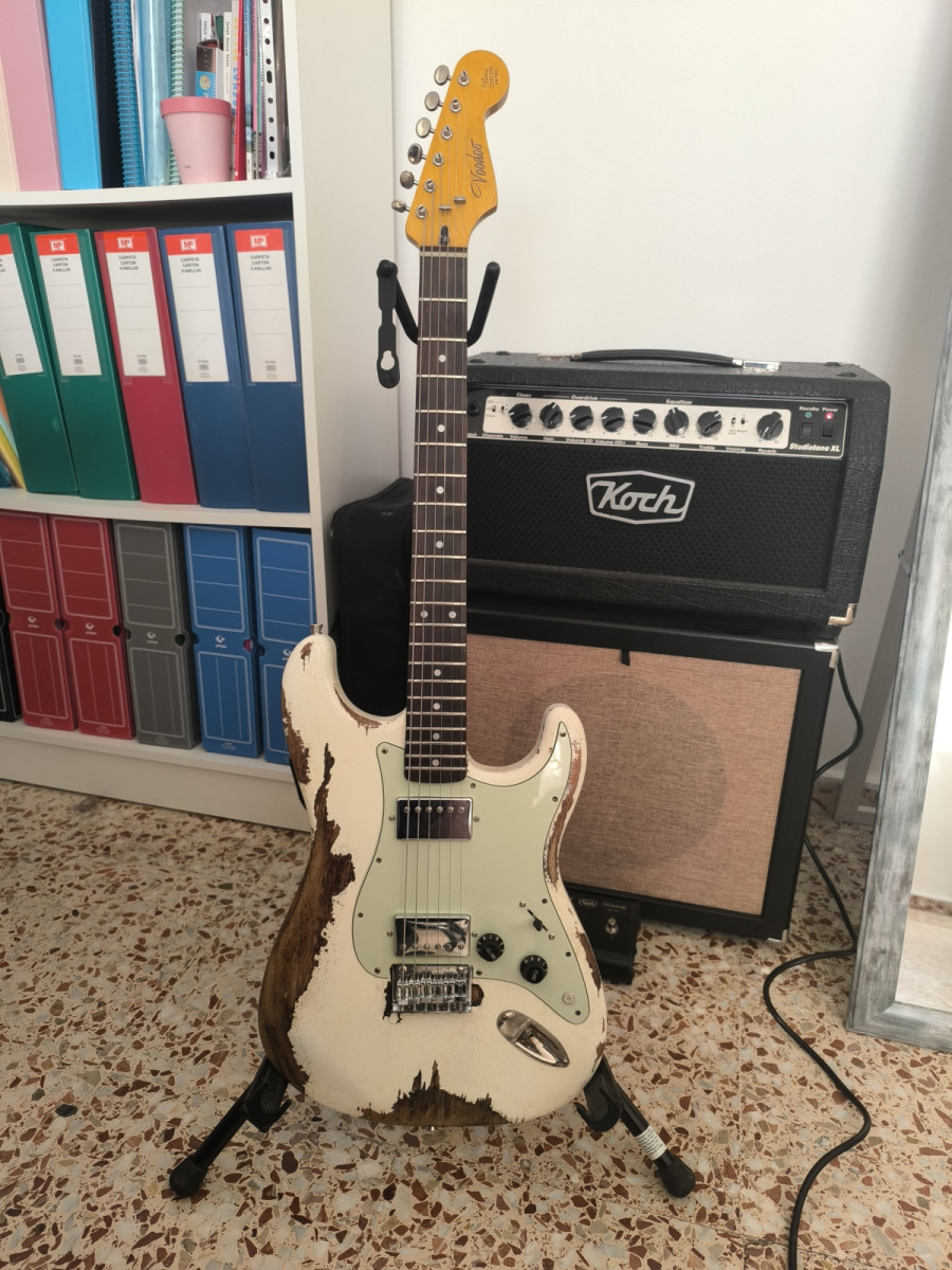 Vendo o cambio strato Vodoo. La guitarra suena muy bien, se ve bien y tiene un peso muy liviano. El tono splitea las pastillas.
