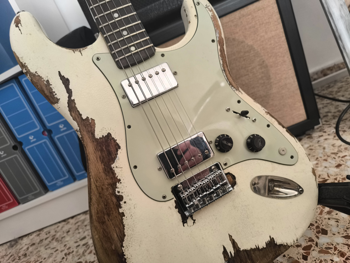 Más fotos en el anuncio con el golpeador hss de Fender.