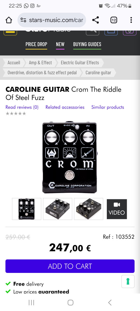 Este anuncio "Caroline guitar Crom The Riddle Of Steel Fuzz" está clasificado en la categoría Pedales y efectos.