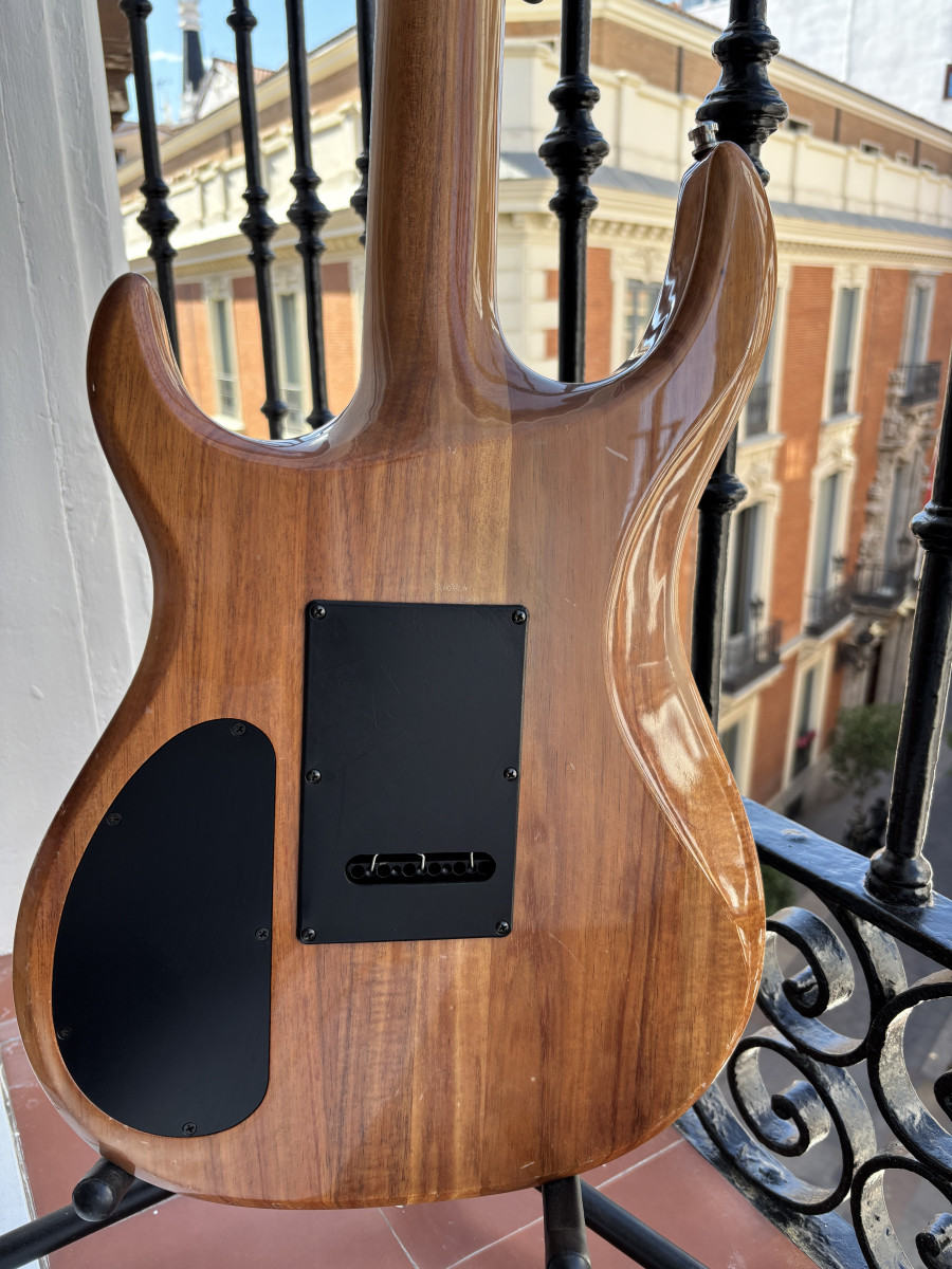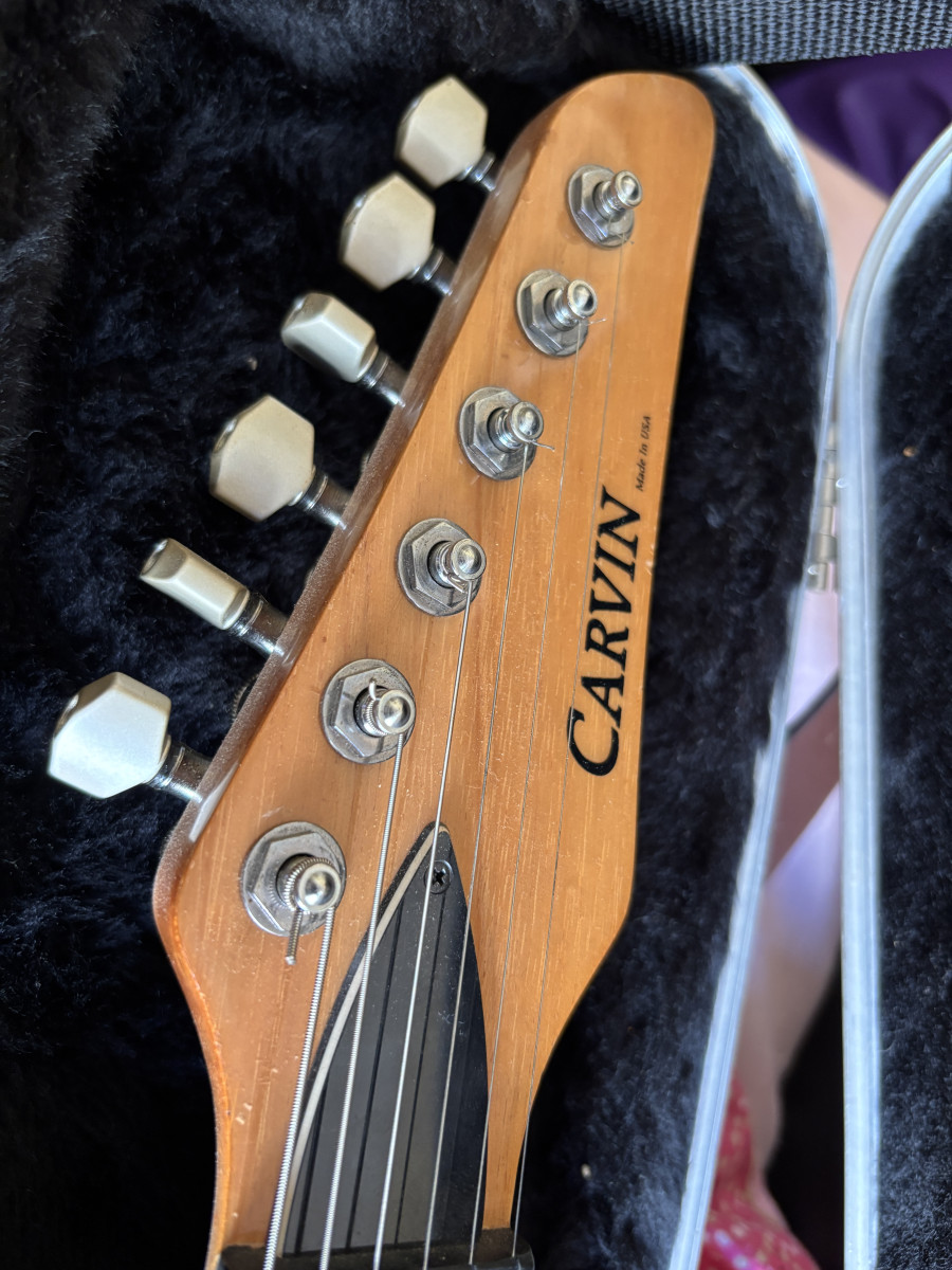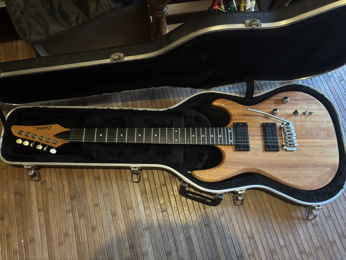 Por exceso de material pongo en venta este guitarrón Carvin DC-127 con cuerpo de caoba, en acabado natural, con diapasón de ébano, puente wilkinson y clavijero de bloqueo.