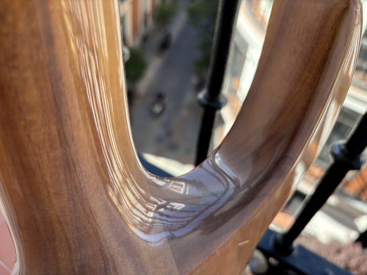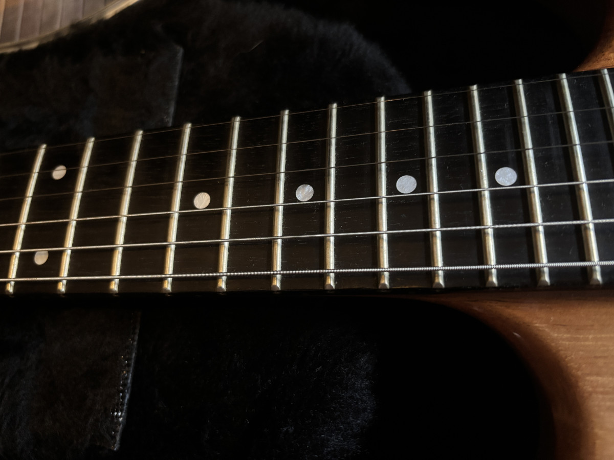 Todos los componentes son originales. En las fotos lleva colgadores Schaller pero la entrego con los suyos. La guitarra tiene algunos dings y marcas de uso de su vida anterior. Trastes en estupendo estado. Otra característica a comentar es que el barniz se encuentra algo mate en algunas zonas, algo que como he podido comprobar, les pasa bastante a estas guitarras.