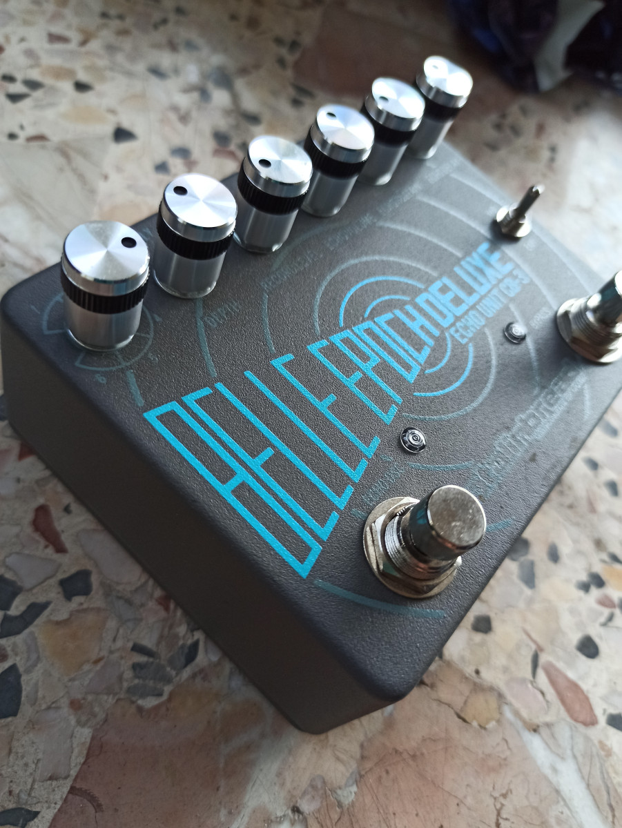 Una reproducción exacta del tono de la icónica cinta 1970 de Maestro Echoplex EP-3 Echo. Amplificadores de grabación y reproducción basados en transistores de silicio de alta ganancia y circuito de retroalimentación para la auténtica sensación de calor y gran control. Interruptor de modo de 6 vías - Profundidad - Nivel de grabación - Volumen de eco - Sostenimiento del eco - Retardo del eco, interruptores manuales: VD / Exp, LED: eco osc. - efecto on / off. Conmutadores de pedal. Alimentado a través de una pila de 9V o una fuente de alimentación de 9V DC Opcional (conector de tipo barril con centro negativo) no incluida. Consumo de corriente: 200mA. Made in USA.