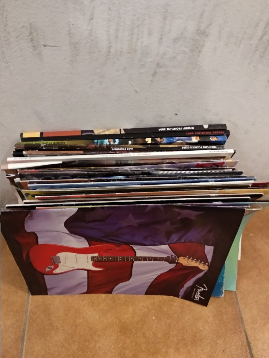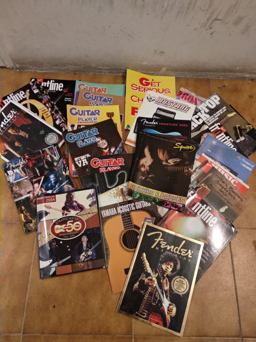 Catálogos Fender, Squier, Epiphone etc y revistas Guitar Player