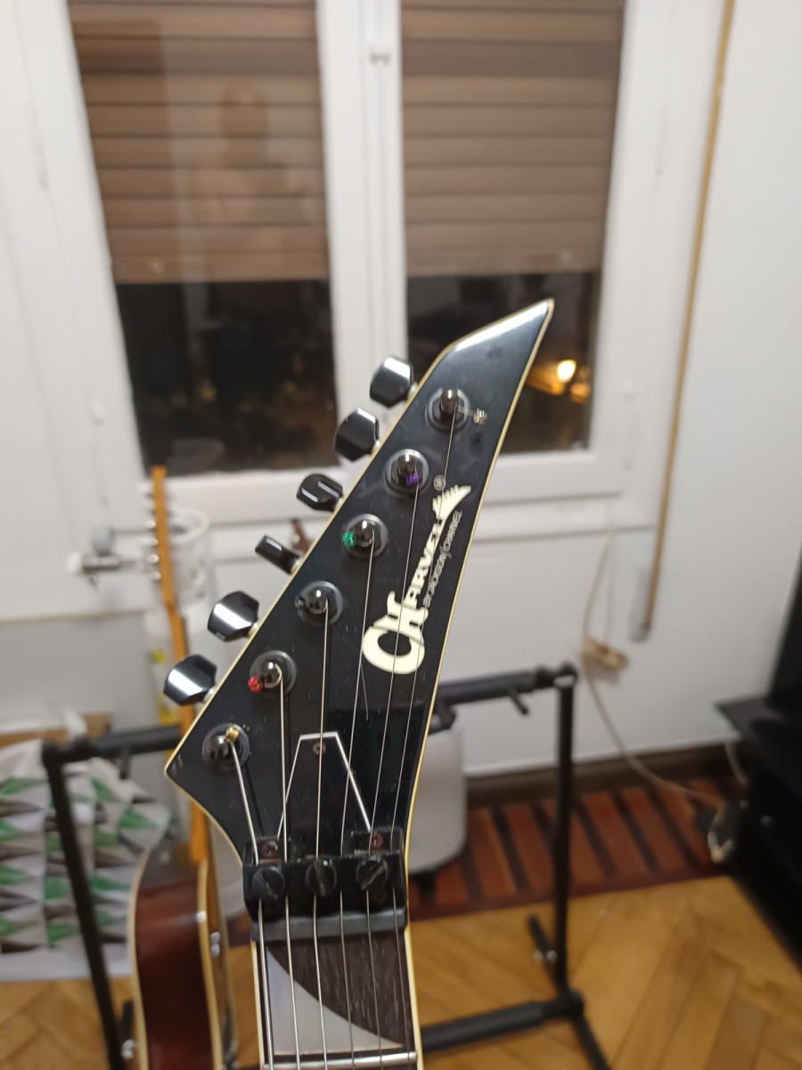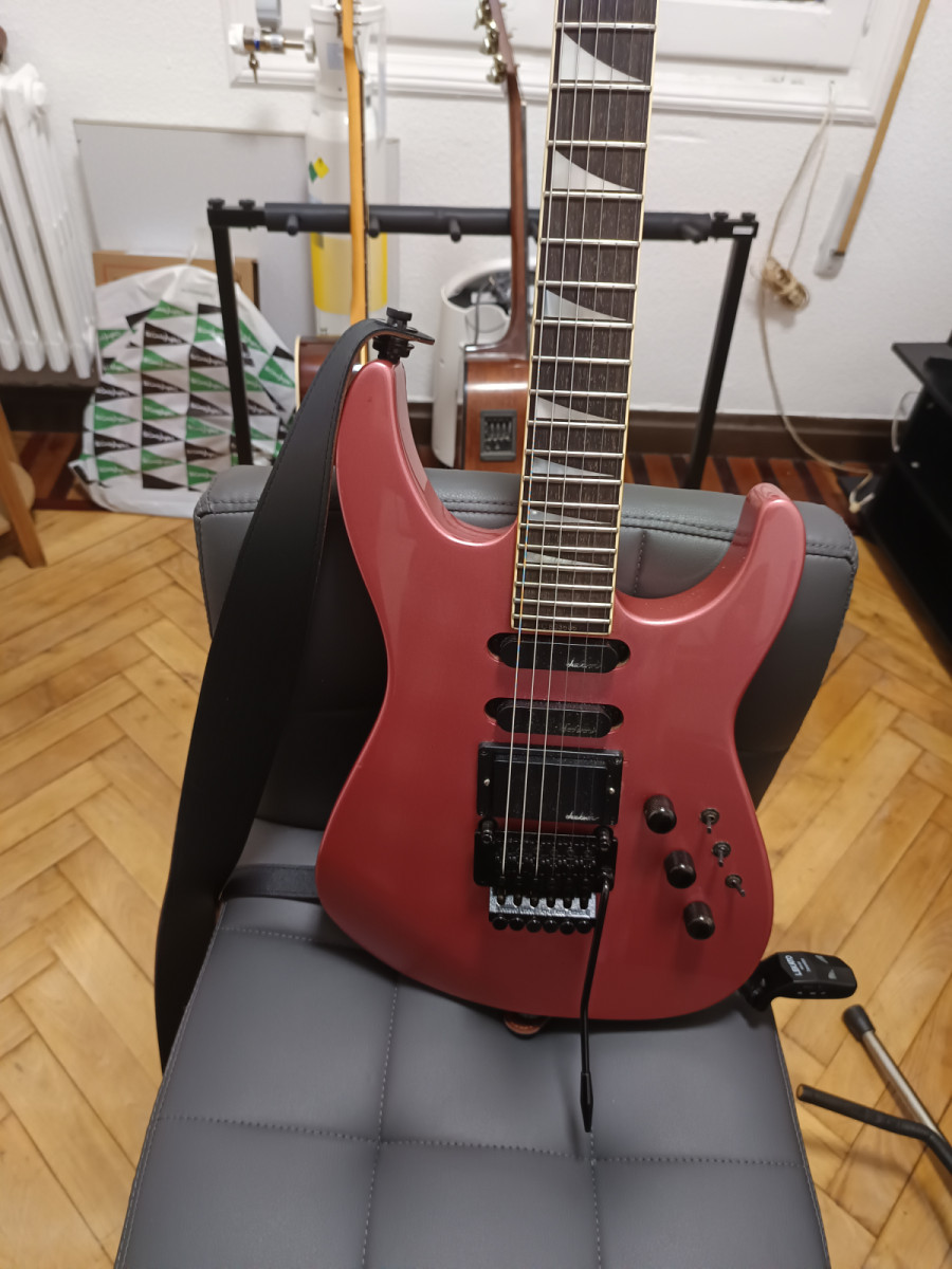 Guitarra japonesa hecha en asociación con Jackson,de una sola pieza, color cereza,en muy buen estado, ajustada por un buen Luther en Vitoria, suena genial,ni un solo ruido y muy cómoda de tocar