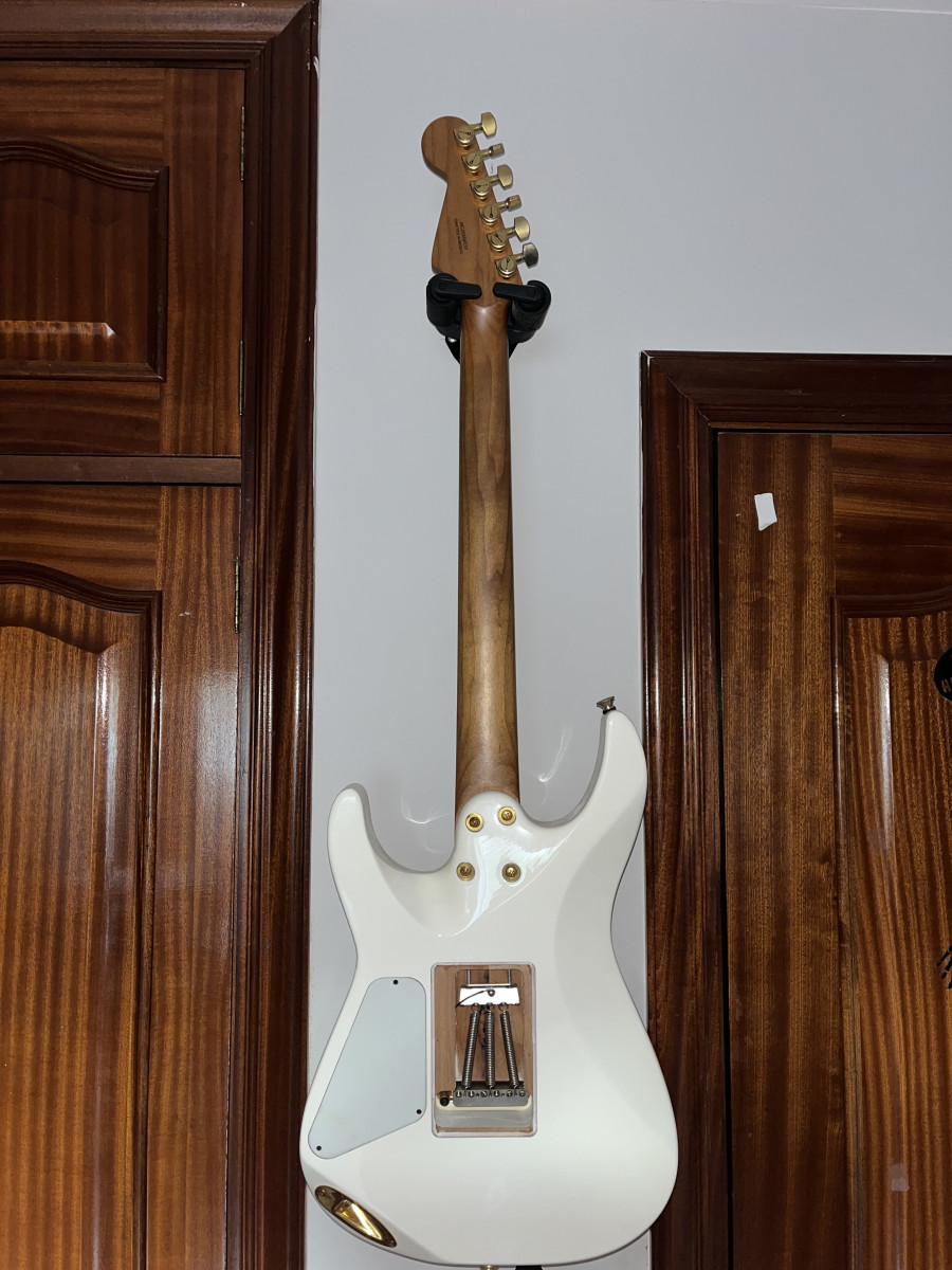 La guitarra está prácticamente nueva, es del 2022 y tiene un sonido espectacular. Apenas tiene uso mas allá de ensayar un rato los findes en casa. La vendo por 750 y estoy abierto a cambio por una similar con floyd rose.