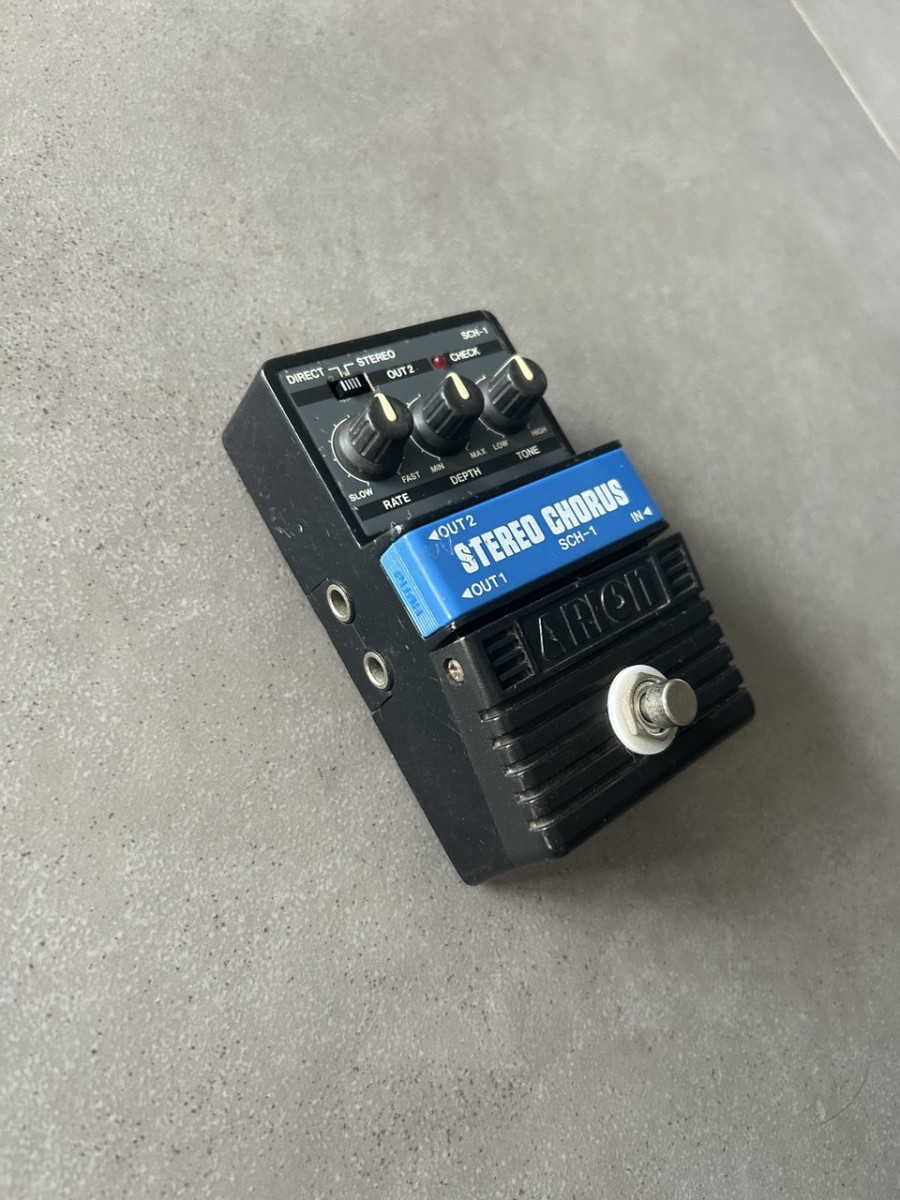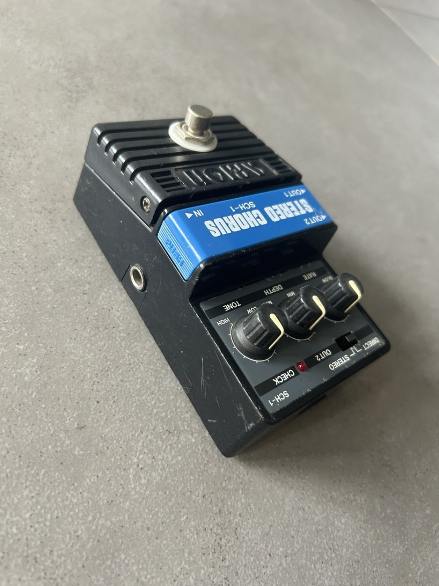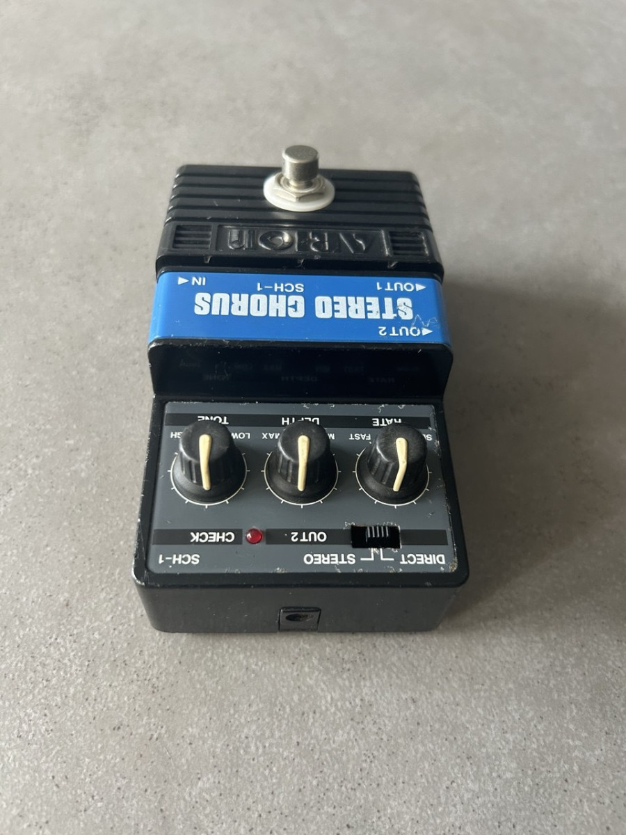 El pedal de chorus estéreo Arion SCH-1 es una joya clásica de los 80, reconocido por su versatilidad y su rico sonido.