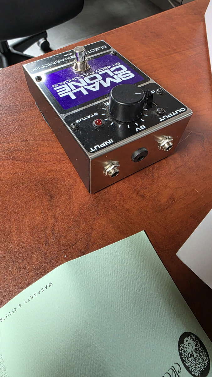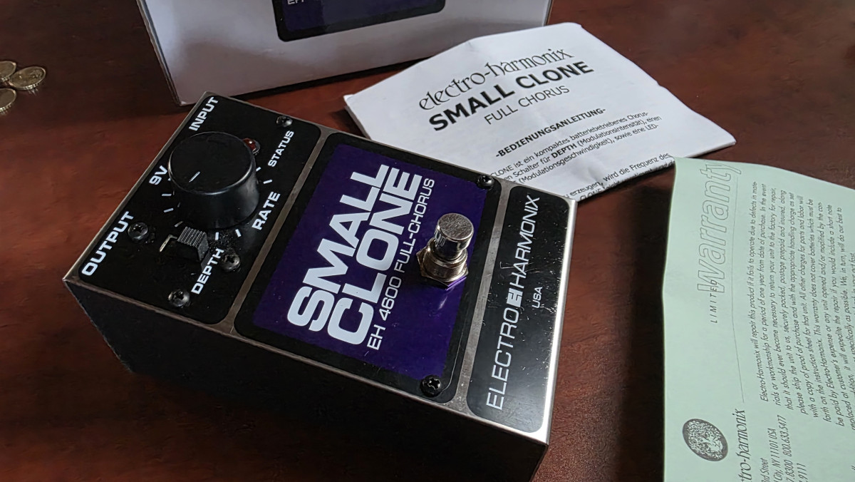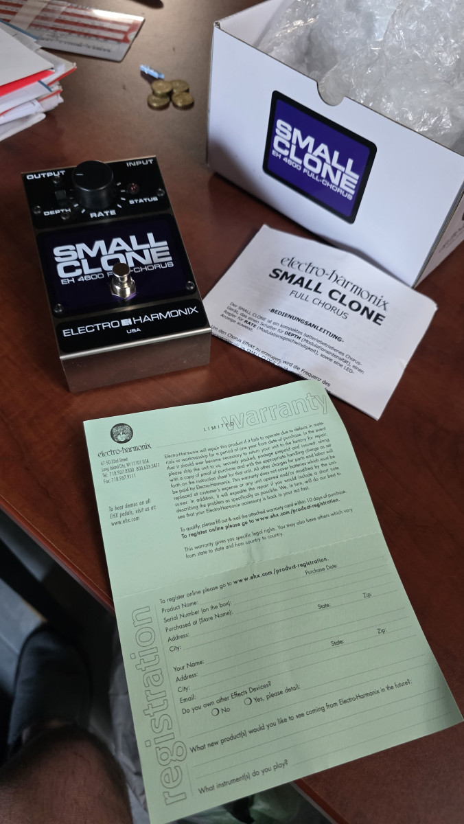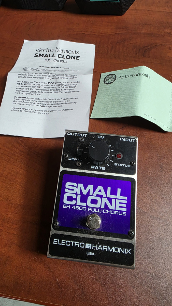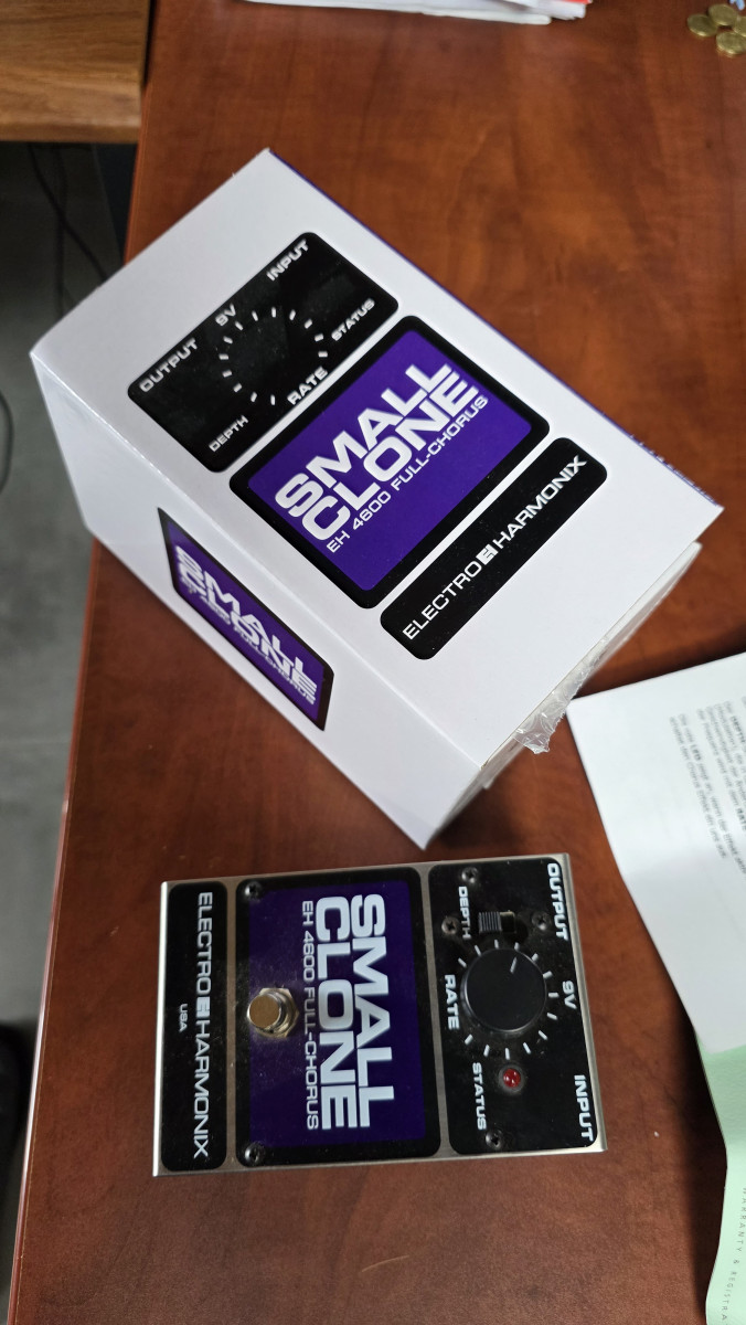 Vendo pedal de efectos Electro Harmonix Small Clone casi nuevo. Con garantía y con caja y documentación original. El auténtico chorus de Kurt Kobain. Usado en algún ensayo y tres bolos. Está como nuevo, comprado en diciembre de 2023. Lo vendo porque es un poco agresivo y prefiero la versatilidad del Boss. Se hacen envíos