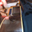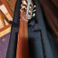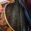 _ El siguiente detalle es que la laca en algunas partes de la guitarra se a puesto un poco blanquecina, en la pala, tacón , aros y parte de atrás .