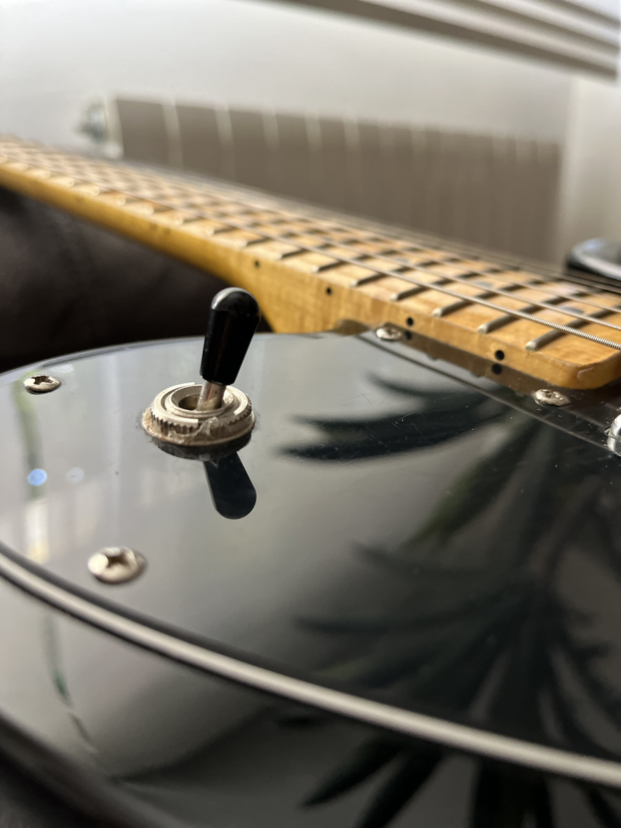 Controles: Volumen 1 (pastilla mástil), Volumen 2 (pastilla puente), Tono 1 (pastilla mástil), Tono 2 (pastilla puente)