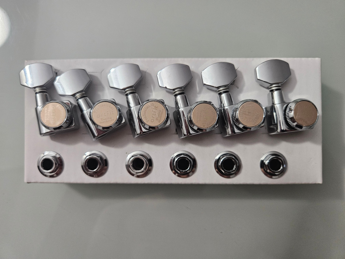 Juego de 6 clavijas de bloqueo para guitarra. Estaban instaladas en una fender stratocaster mexico que he vendido. La marca no es muy conocida pero funcionan perfectamente.