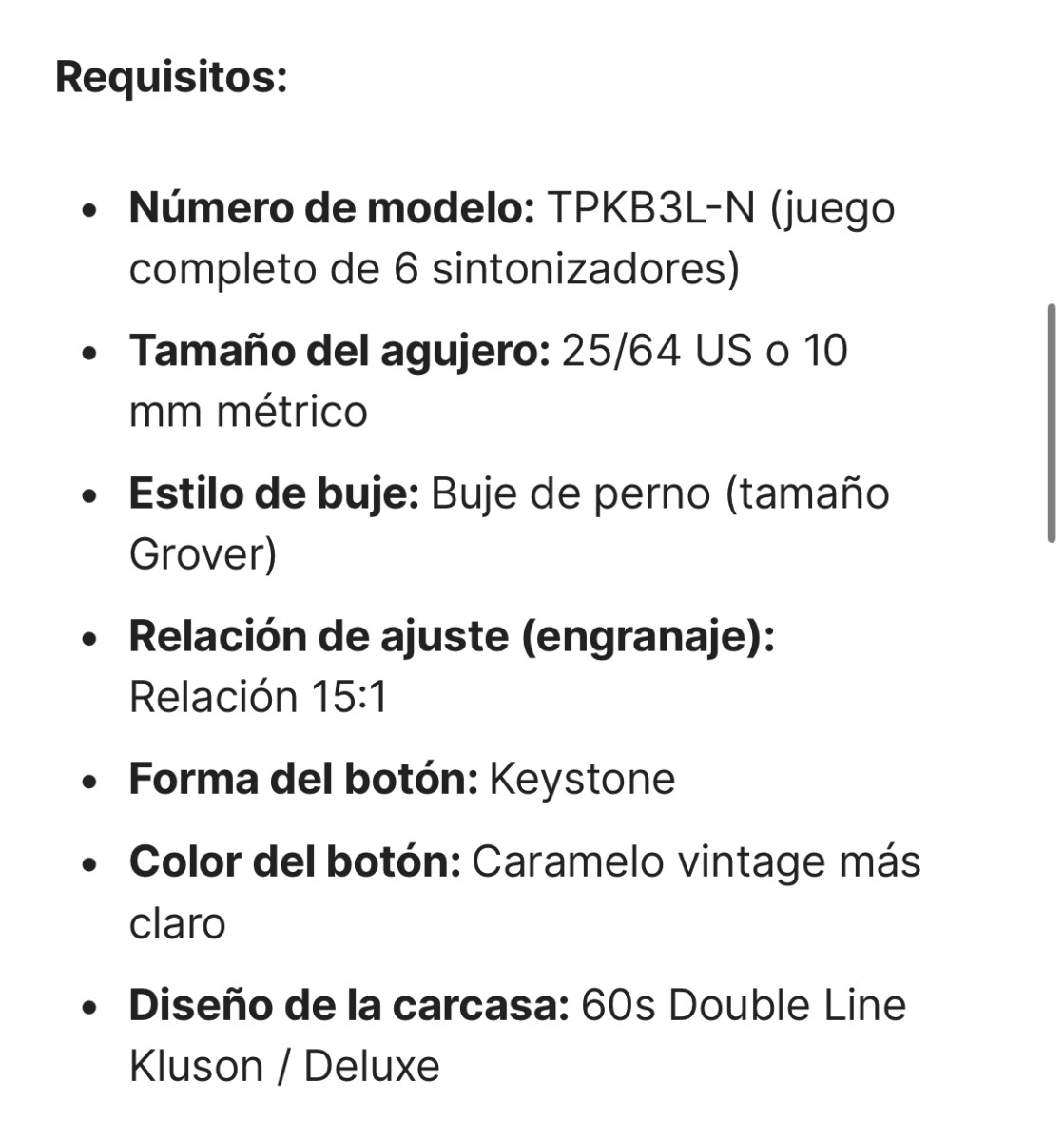 Clavijeros Fender 6L en Madrid30 €