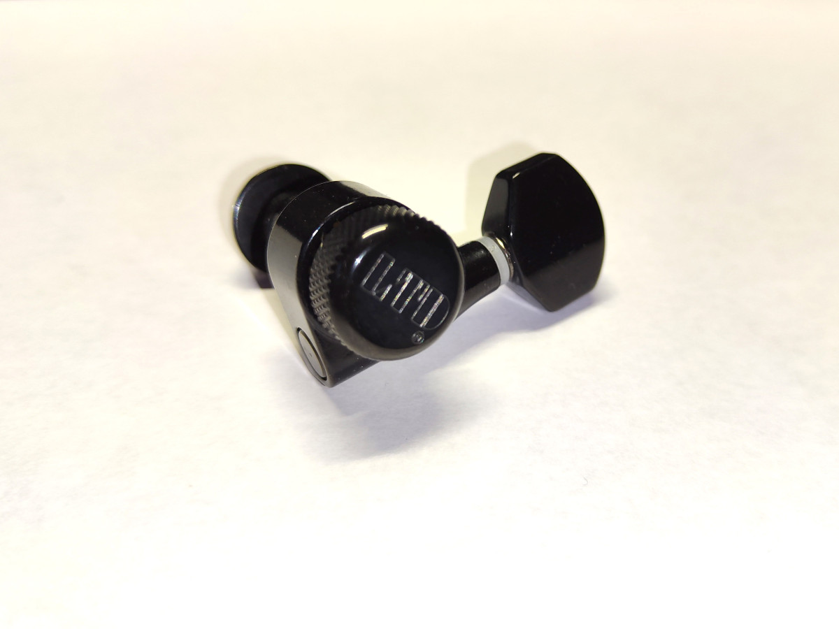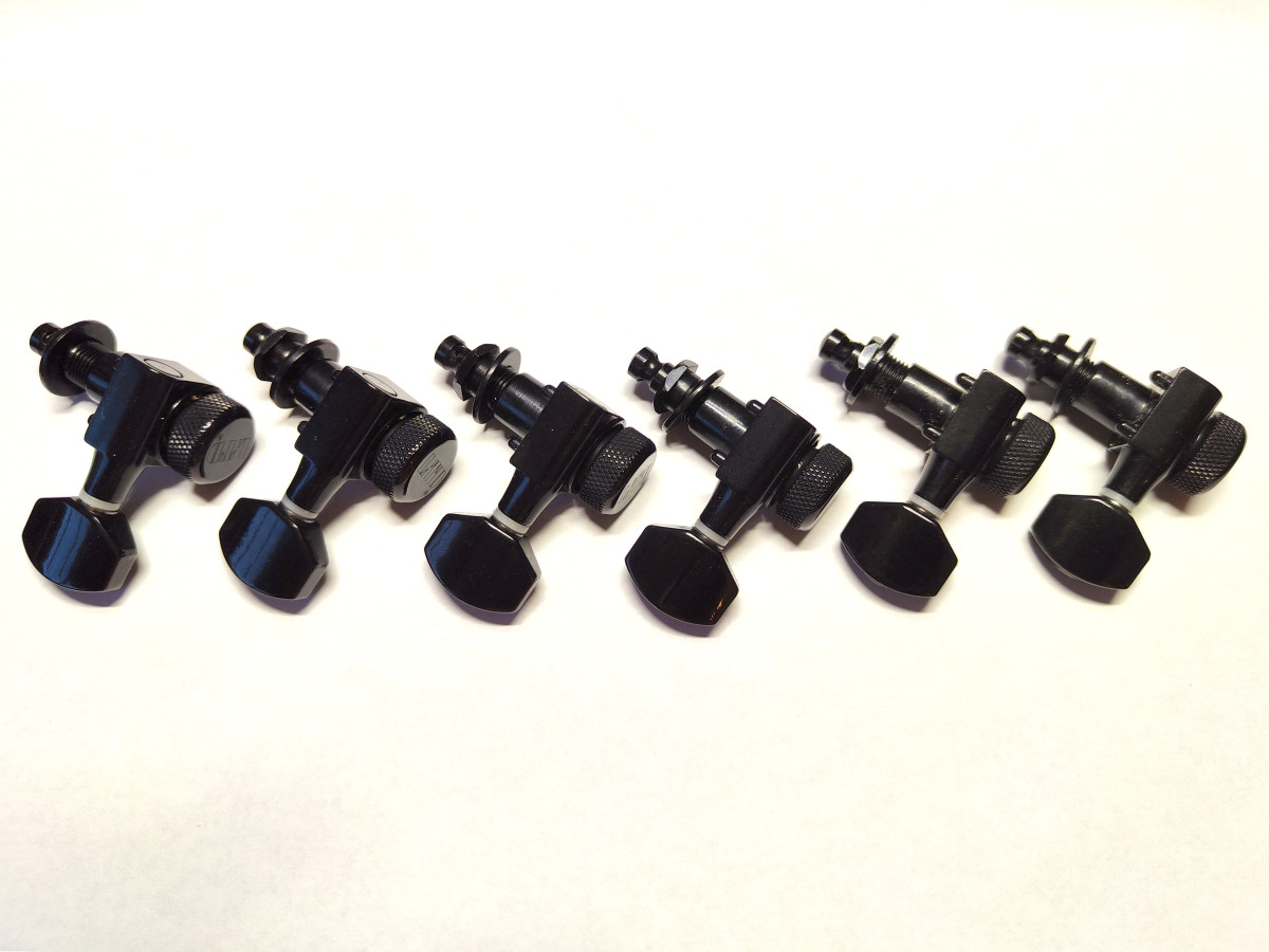 Clavijeros ESP LTD de bloqueo negros 6 en linea para palas invertidas o guitarras para zurdos. Retirados de una M-1000 comprada hace dos semanas porque quería un cambio de color del hardware, vamos que están nuevos. El formato es el que creo que montan todas las LTD con dos "patitas" en la parte recta, sin tornillo, pero necesitas tener (o hacer) esos dos agujeros para que encajen. Son un reemplazo ideal si tienes los antiguos sin bloqueo y no quieres hacer modificaciones o quieres tener backup porque son difíciles de conseguir. El coste incluye el envío a España.