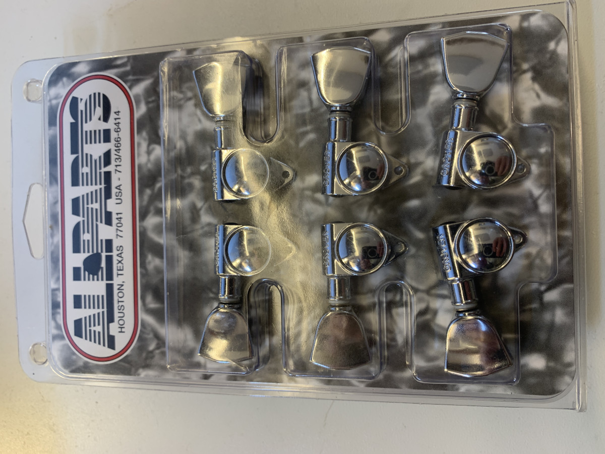 Set de clavijeros para guitarra marca Grover, modelo para Gibson. - Acabado cromado brillante. - Incluye 6 unidades. Nunca se han usado; importados de U.S.A ( All Parts).