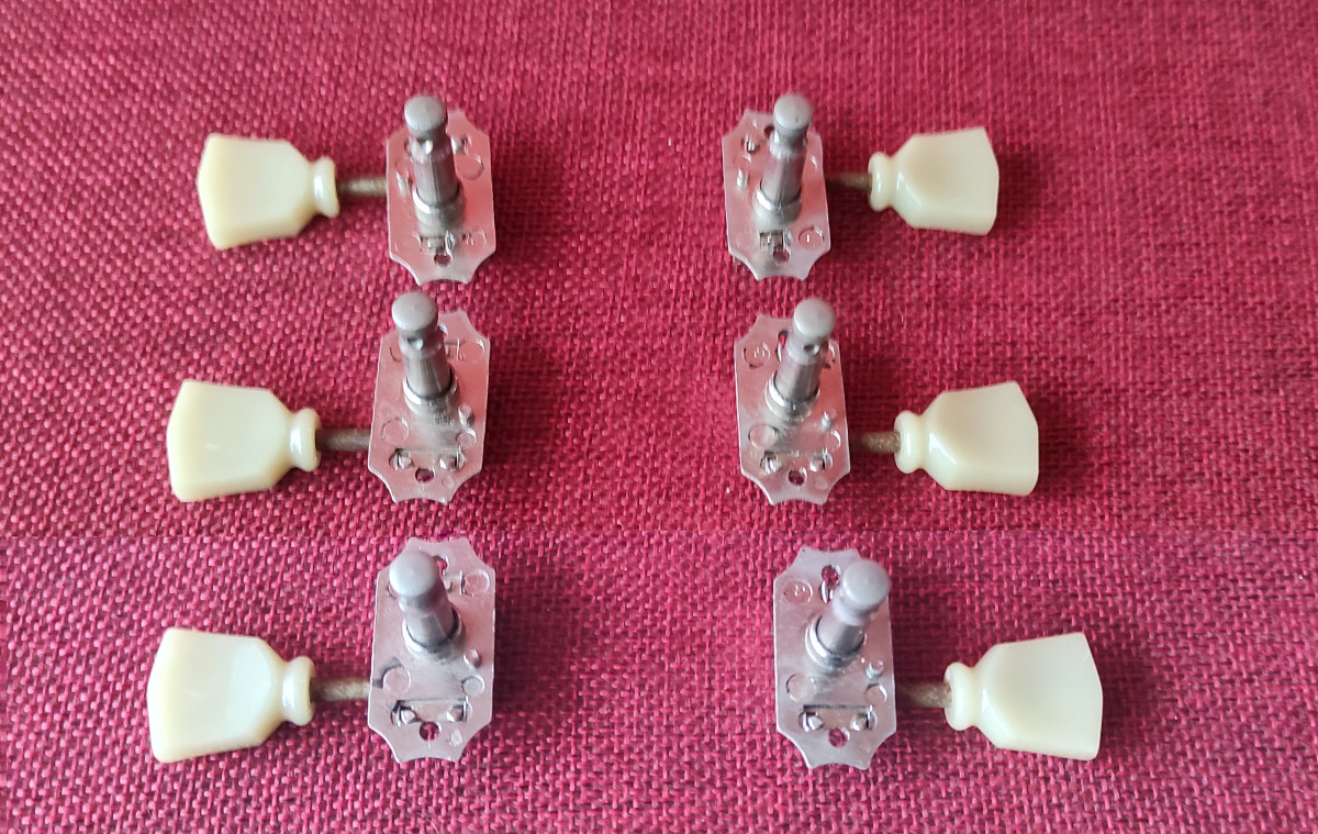 Con su pátina propia de la edad, estos kluson con la famosa inscripción "Deluxe" como los antiguos que usaba Tokai son de una alta calidad, muy por encima de los Kluson actuales. Los guardaba para una restauración pero no voy a meterme con ningún proyecto en este momento así que prefiero que alguien los disfrute.