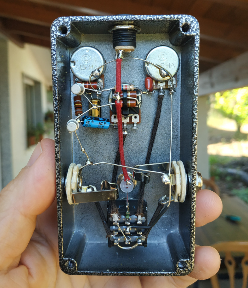 Este no es el típico clon de un Sun Face basado en un esquema bajado de internet (que por cierto, están todos mal). Esto es un CLON EXACTO. He tenido TODOS los modelos de Sun Face de silicio que fabrica Analogman (Foto) y he estudiado meticulosamente su construcción. El modelo que fabrico lleva transistores de silicio de alta ganancia BC108C con buen sustain, MUY BUENOS MEDIOS y gran definición.