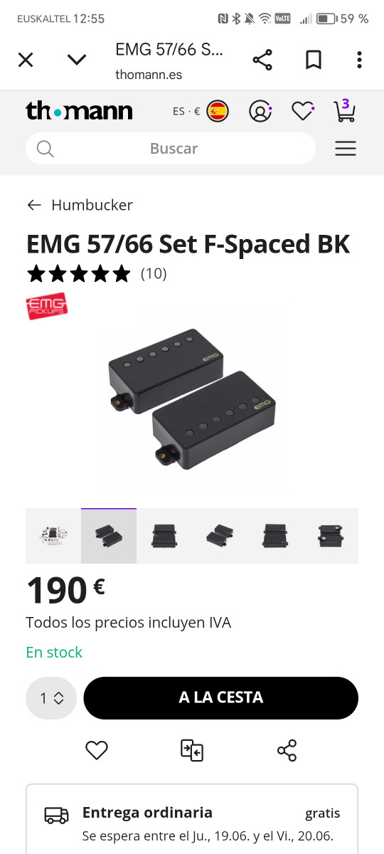Este anuncio "Compro Emg 57/66 F spaced black" está clasificado en la categoría Guitarras.