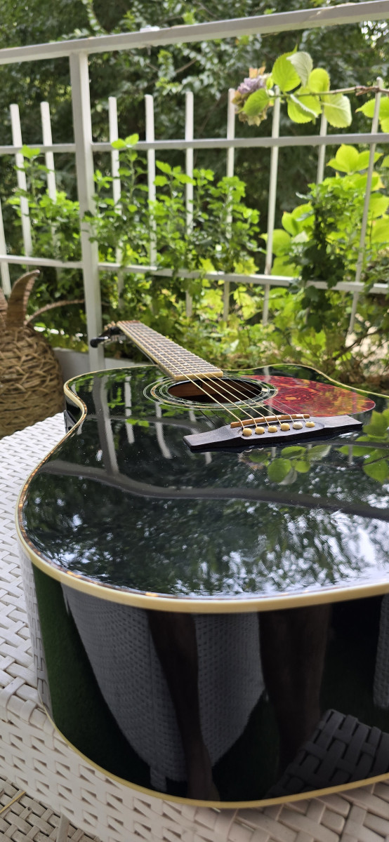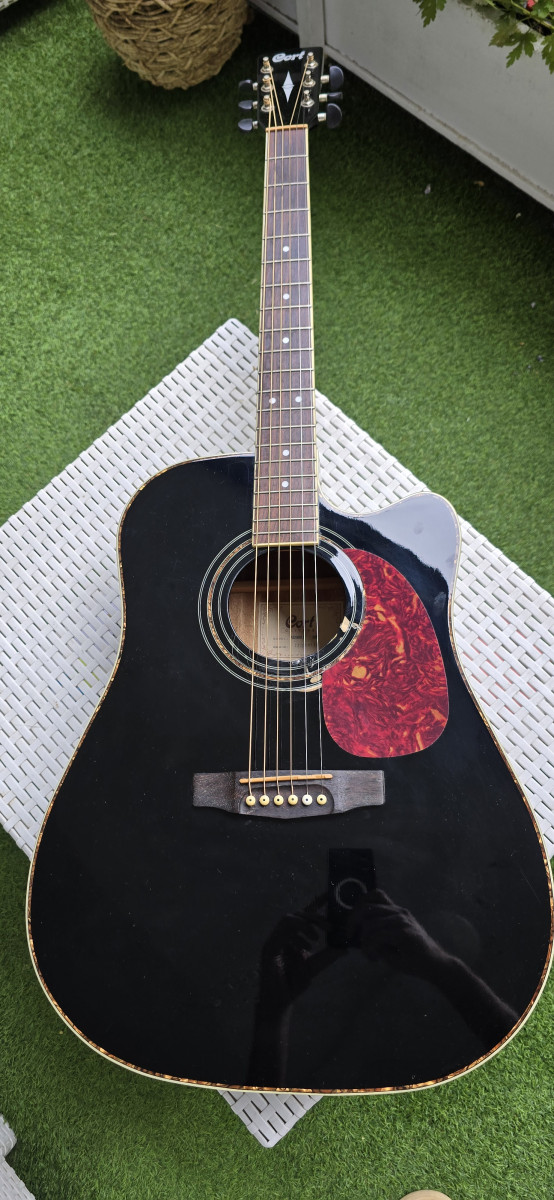 Guitarra electroacústica Cort mdl AD 880 E BK. La guitarra está en buen estado. Tuvo un golpe en la boca, como se aprecia en la última foto, pero está reparada. También se le cambió el preamplificador por uno mejor, un Fishman de una Fender, dándole un mejor sonido cuando se enchufa. Si quieres una guitarra con calidad de sonido y acabados, esta es una muy buena opción. Más guitarras en mi perfil.