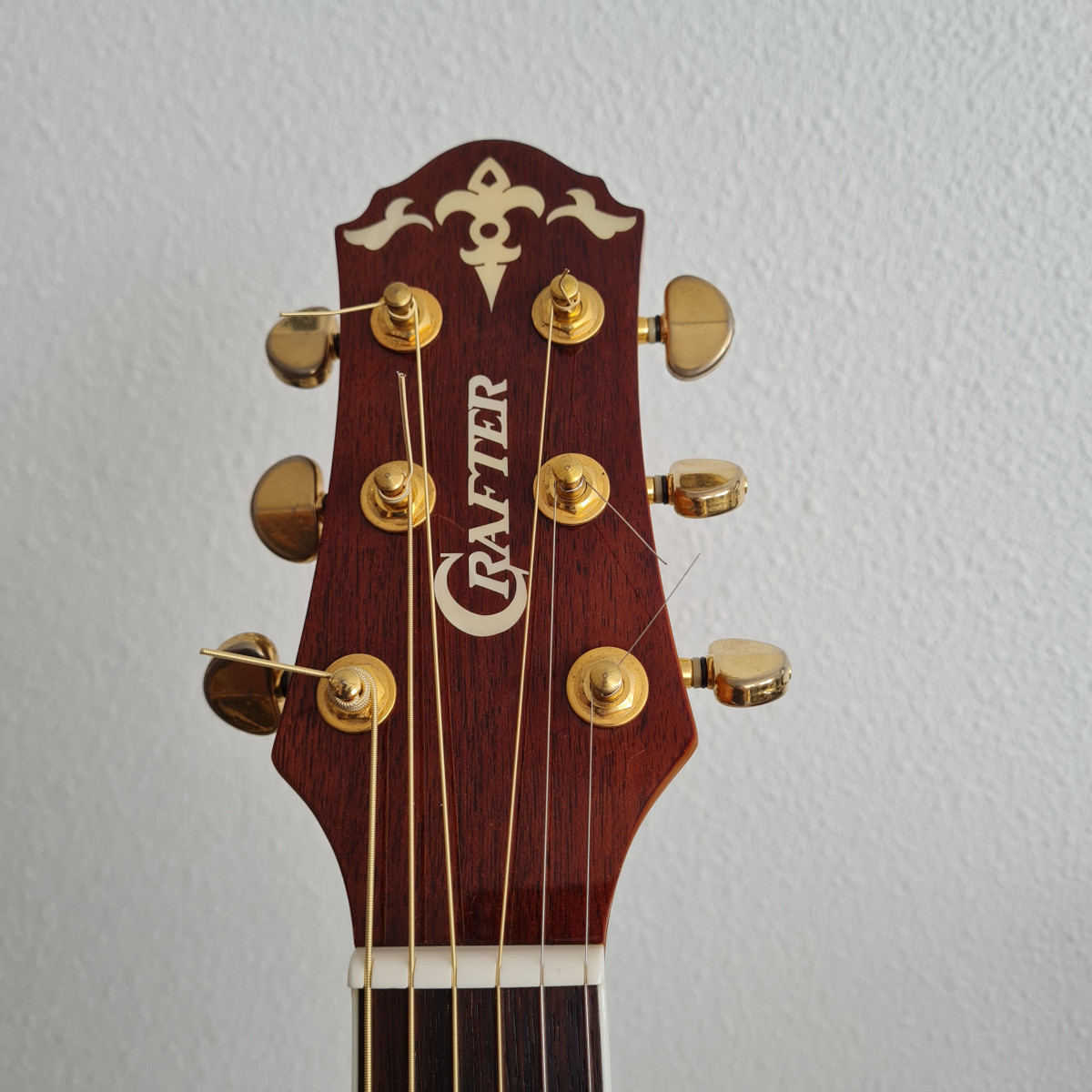 Esta es una Crafter FSG-300EQ. Está en perfecto estado. Ha sido ajustado por un luthier y tiene cuerdas nuevas. Incluye una funda blanda de regalo.