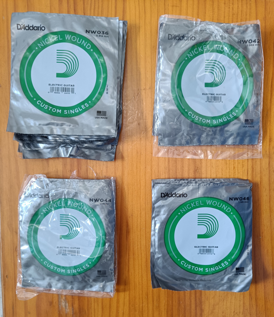 Tengo varias cuerdas nuevas de los calibres que se ven en la foto: 046, 044, 042 y 036.