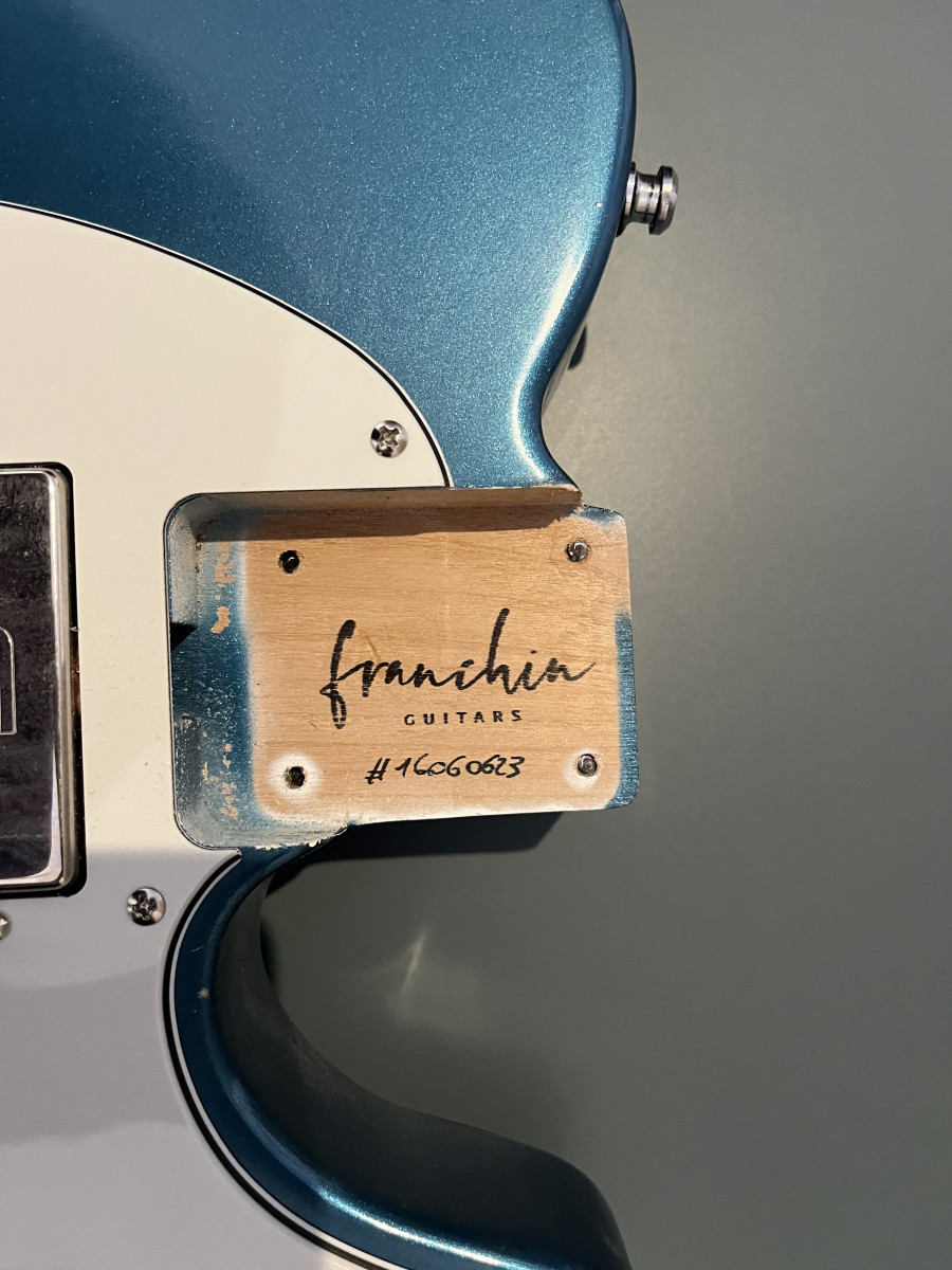 - Cuerpo: Franchin Guitars, Lake Placid Blue de nitrocelulosa, con envejecimiento de fábrica (mínimo).