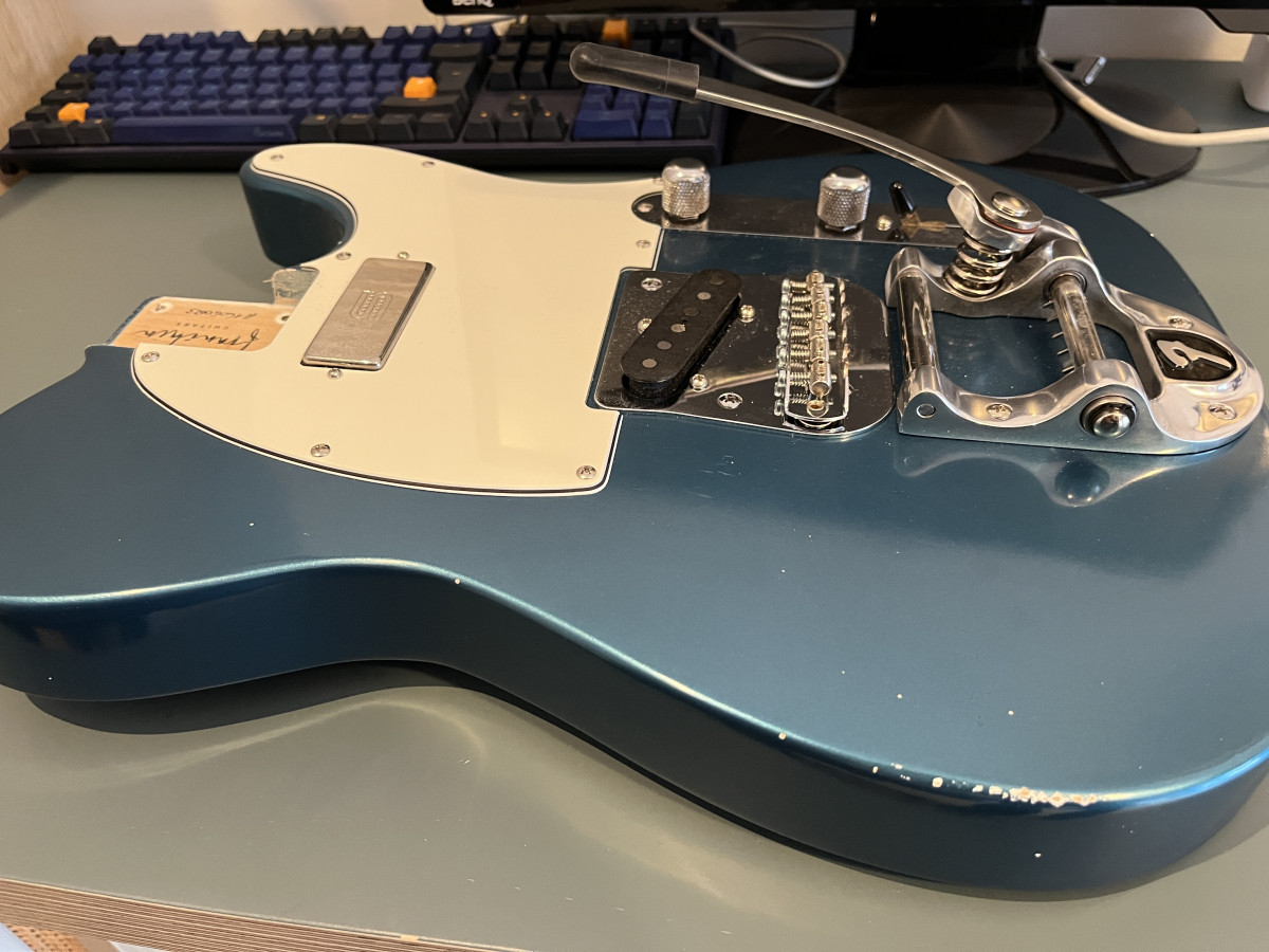 Vendo por aligerar material este cuerpo Telecaster de Franchin Guitars, con pastillas, electrónica y Bigsby, inspirado en el modelo Hot Rod 52.