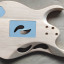 Hecho con CNC y listo para pintar o barnizar, aunque estaría bien pasarle una lija fina por si tuviese alguna pequeña marca. El mástil que se ve en la foto es de una JEM 7 BSB, que encaja perfecto. No sé qué madera es, parece aliso pero no estoy seguro. Incluyo las tapas traseras sin agujeros para los tornillos