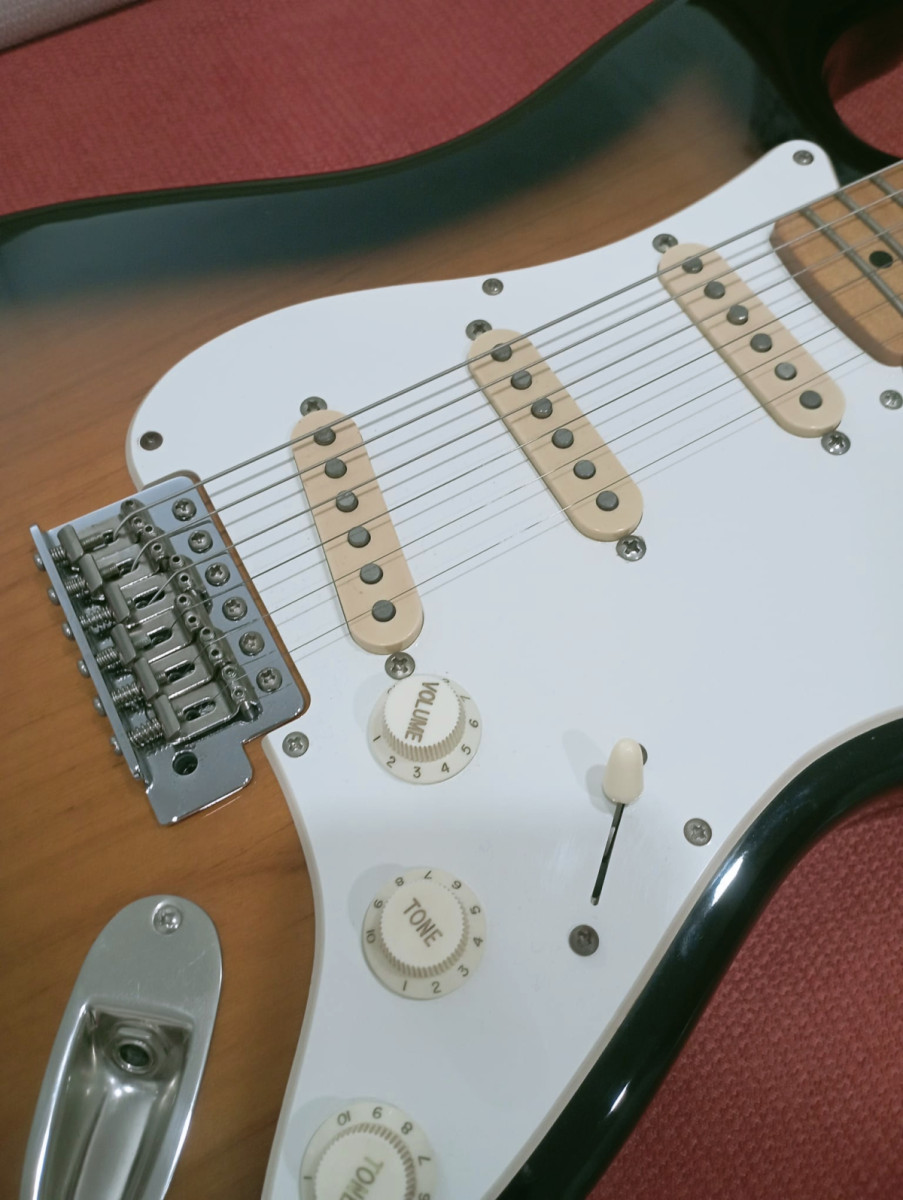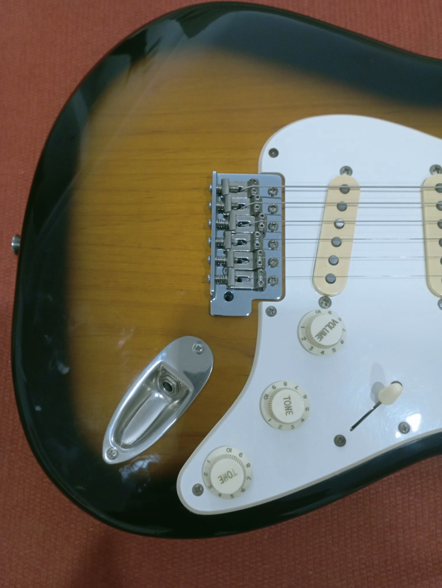 Cuerpo de Aliso, no de pino como las actuales, con tono equilibrado con sonido claro, ataque brillante y buen sustain, con acabando en Poliuretano brillante. Tres pastillas single-coil alnico III con imanes diseñados para tonos vintage de la marca Tonerider por encargo de Fender en aquella época. Configuración SSS (single-coil, single-coil, single-coil). Controles: