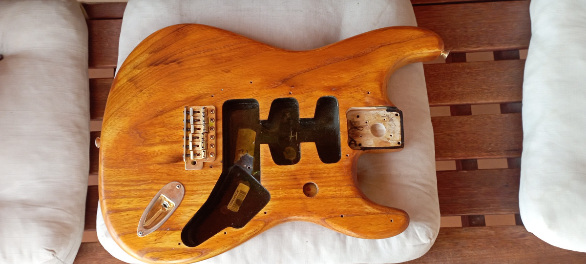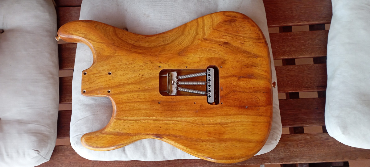 Cuerpo de Stratocaster Deluxe Player del 2010, madera de fresno, con mucha veta, el cuerpo tenía acabado sunburst, se decapo y se dejo al natural, previo tintado y terminado en tru oil. Vendo con los herrajes originales de la guitarra, trato en mano, no busco cambios.
