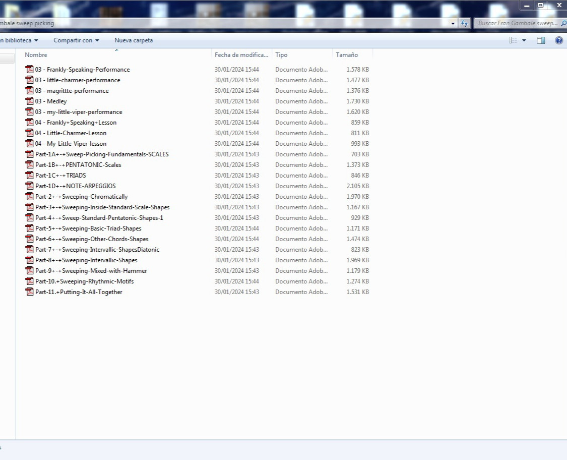 Curso de sweep picking, con vídeos y partituras en PDF.