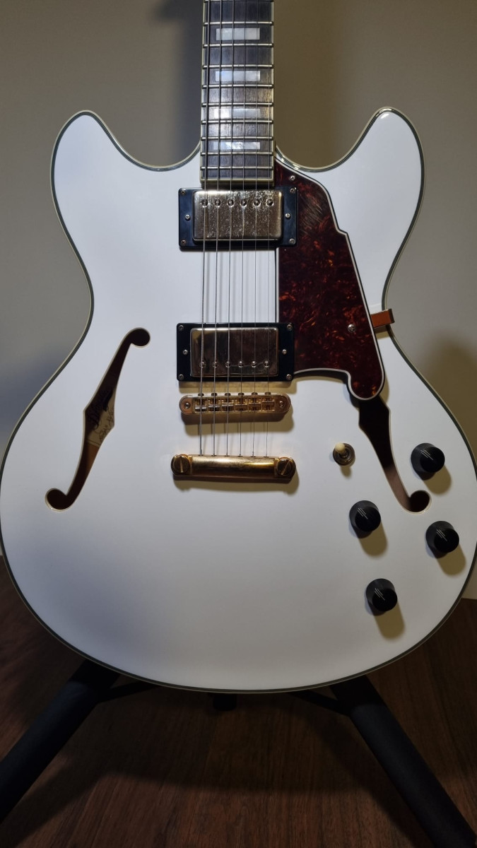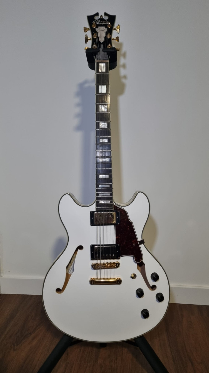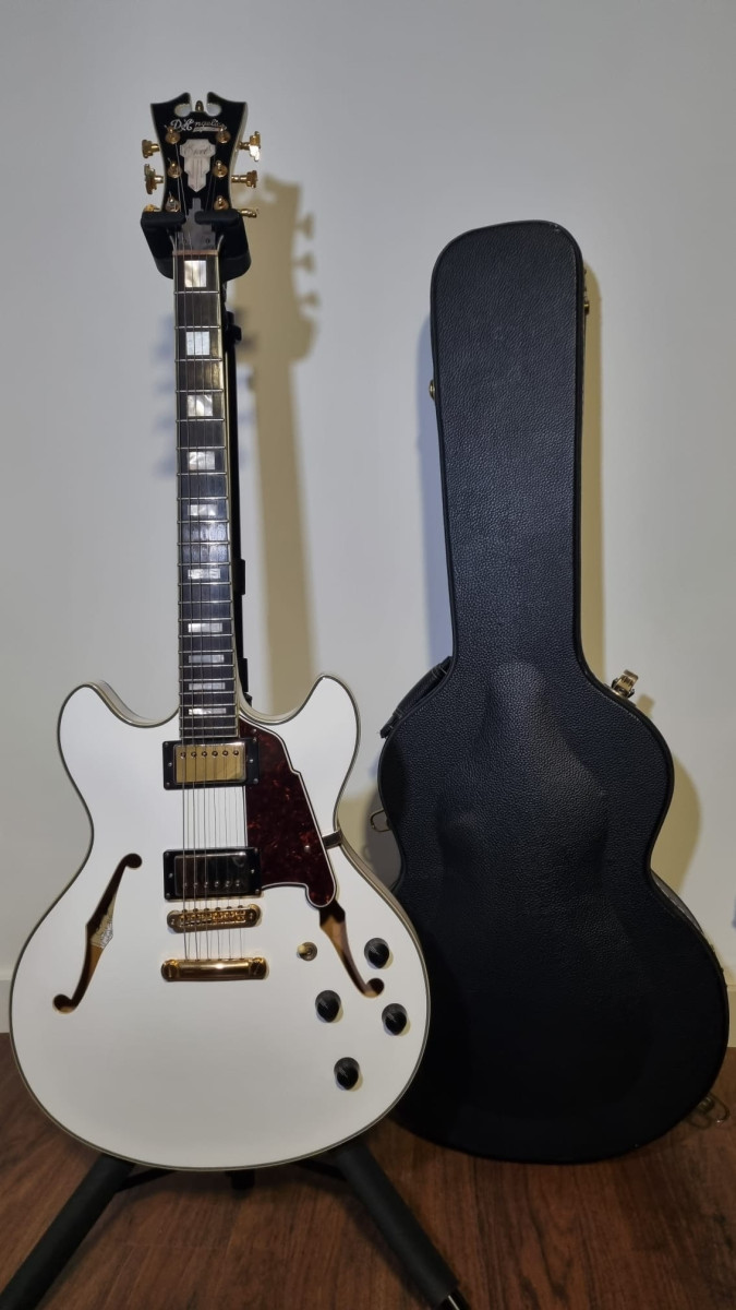 ¿Buscas una guitarra que destaque tanto en el escenario como en tu colección? Vendo mi D'Angelico EX-DC/SP en un acabado blanco impecable con herrajes dorados. Es la combinación perfecta entre estética Art Déco y un sonido semi-hollow profesional.