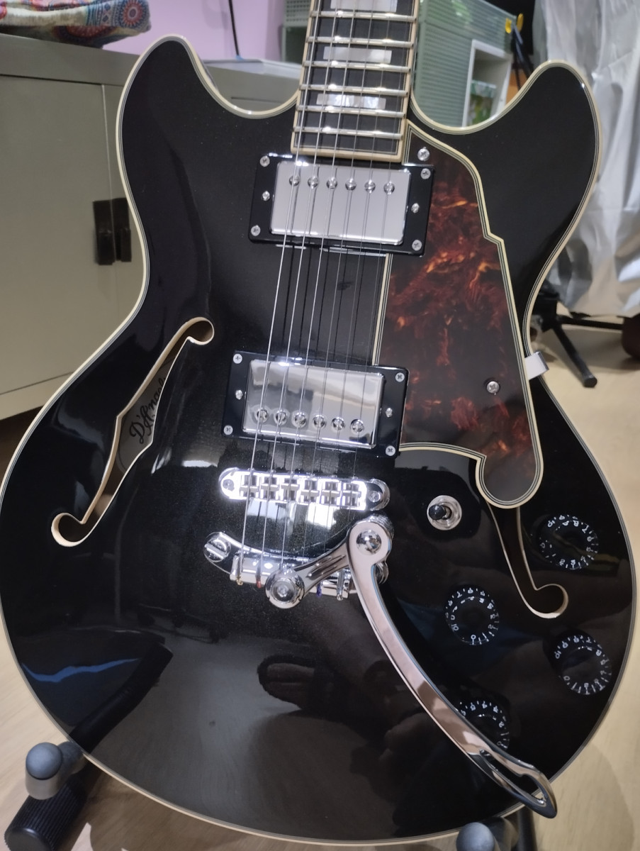 D'Angelico Mini DC Premier Black Fake 'Deluxizada'
