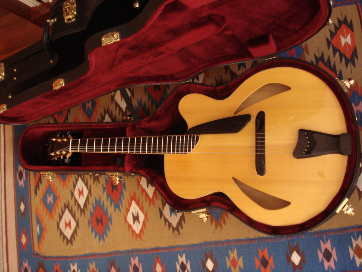 La guitarra está en perfecto estado y viene con su estuche duro con logo D’Aquisto.
