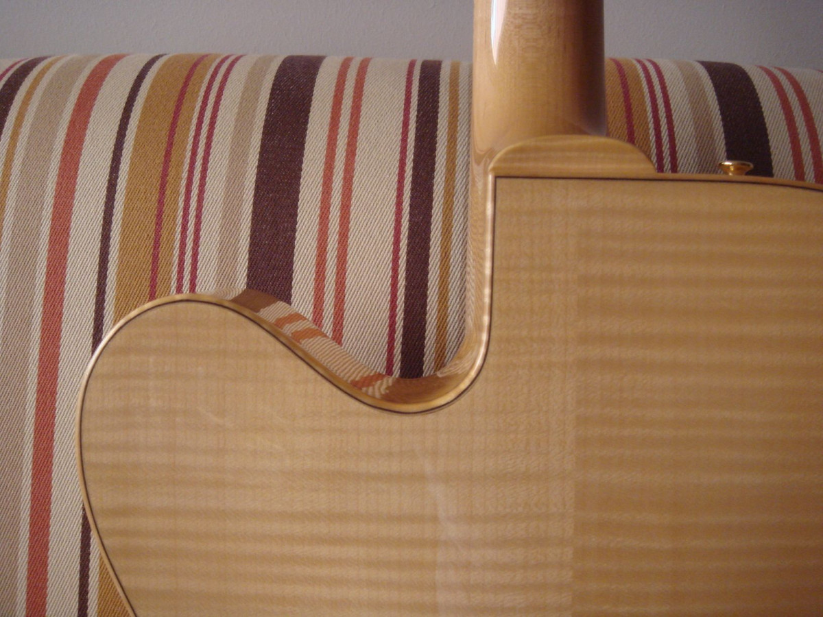Tapa arqueada de abeto macizo. Bindings de arce. Trasera arqueada de arce.