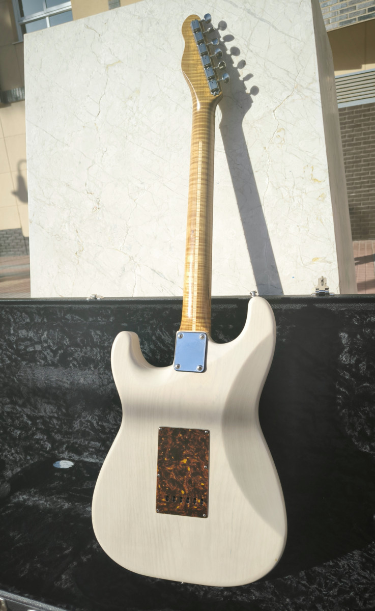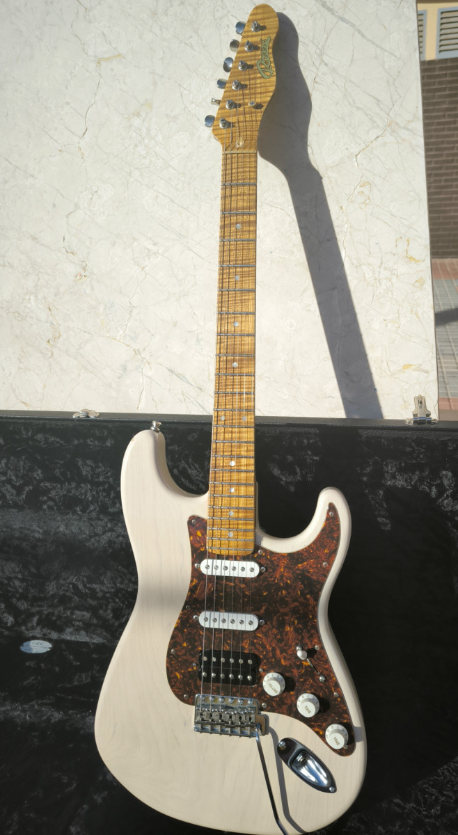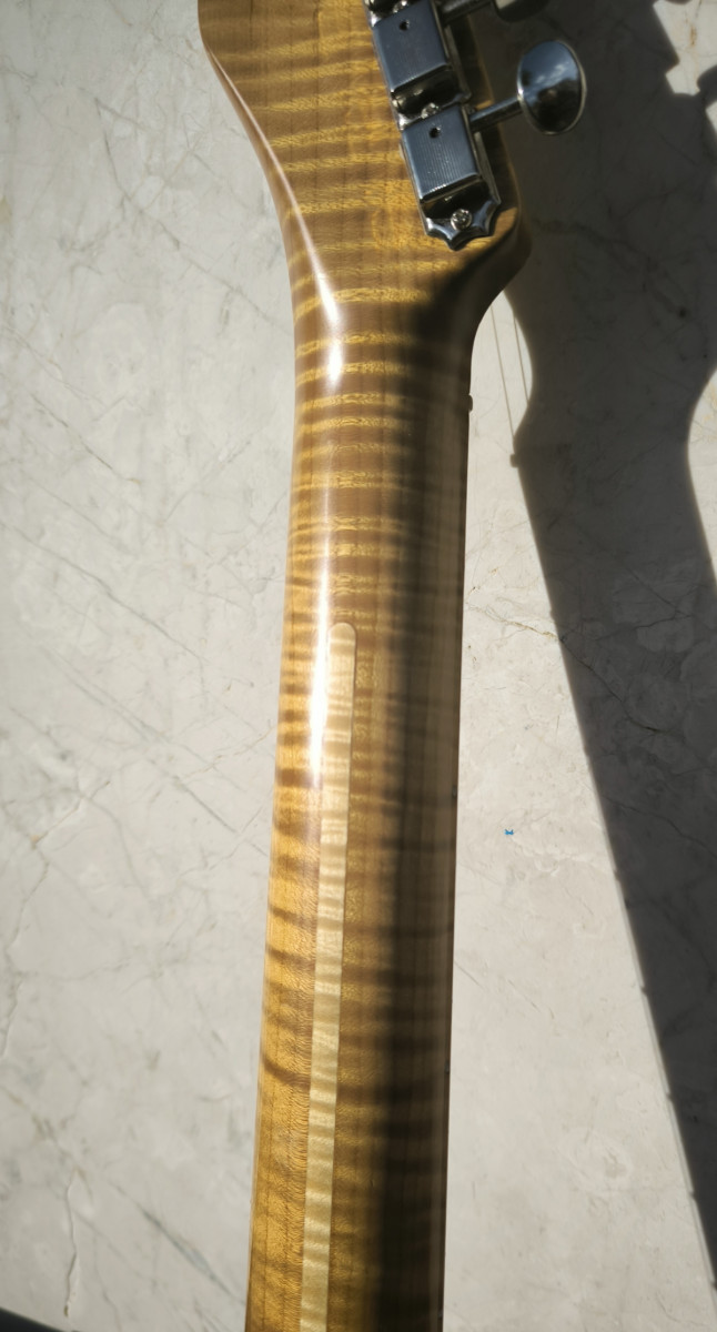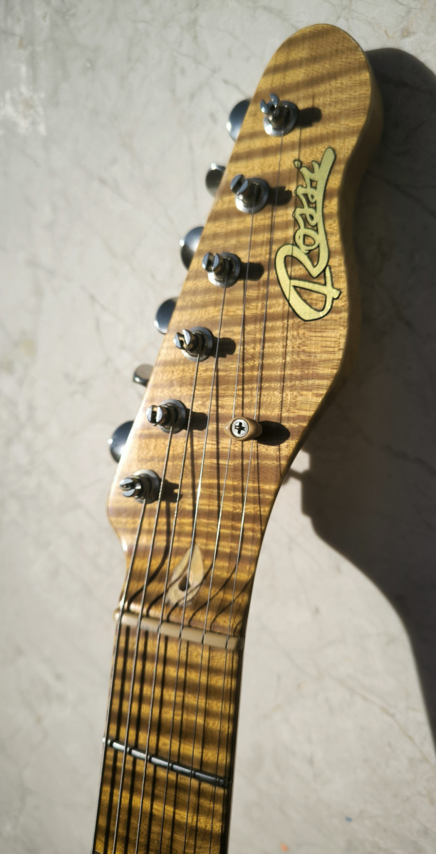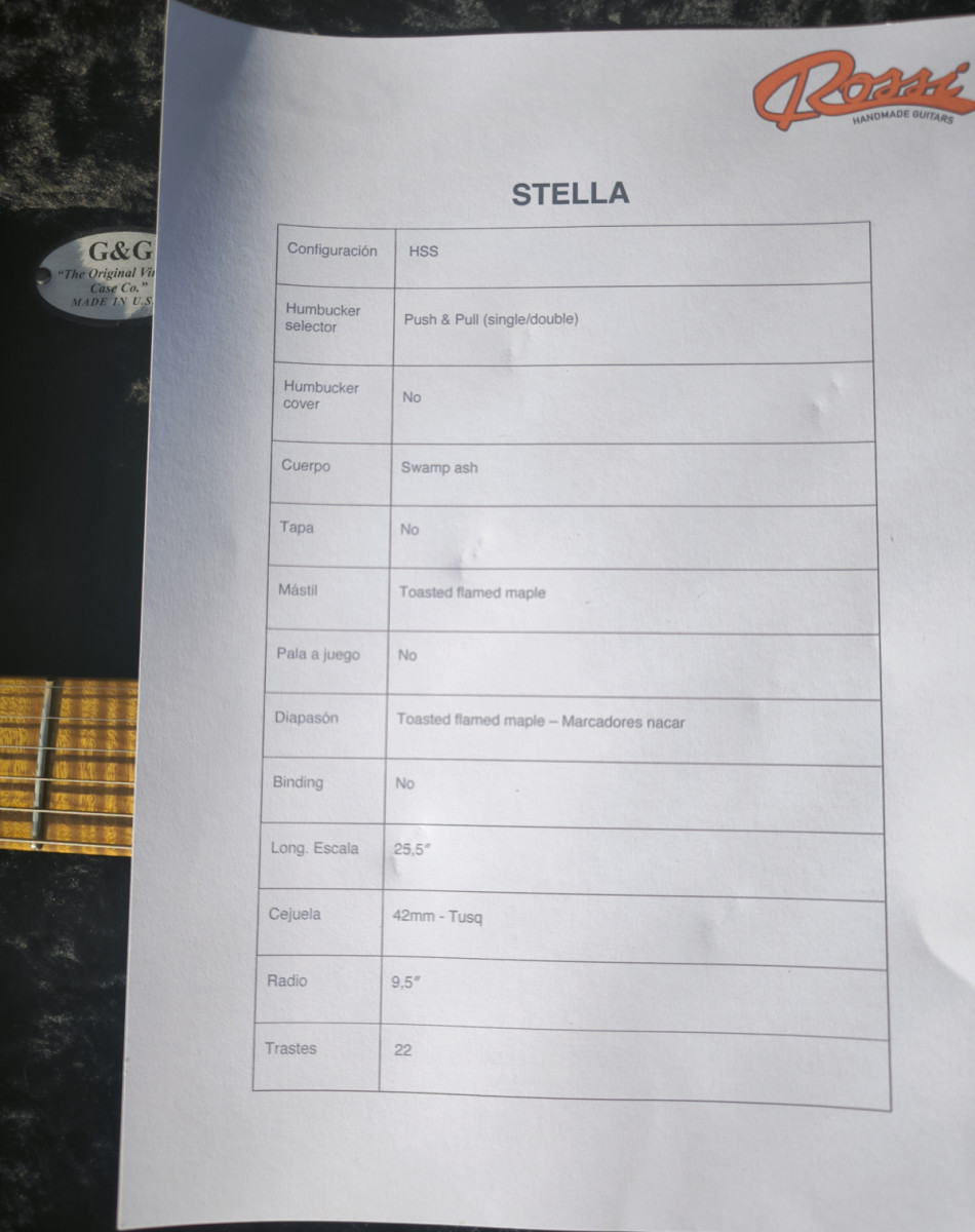 Maderas, acabados, pastillas, electrónica...todo de primerísimo nivel, mención especial al mástil tostado y flameado absolutamente de otro planeta, visulamente lo más impresionante que yo he visto o tocado (los specs están en una de las fotos).