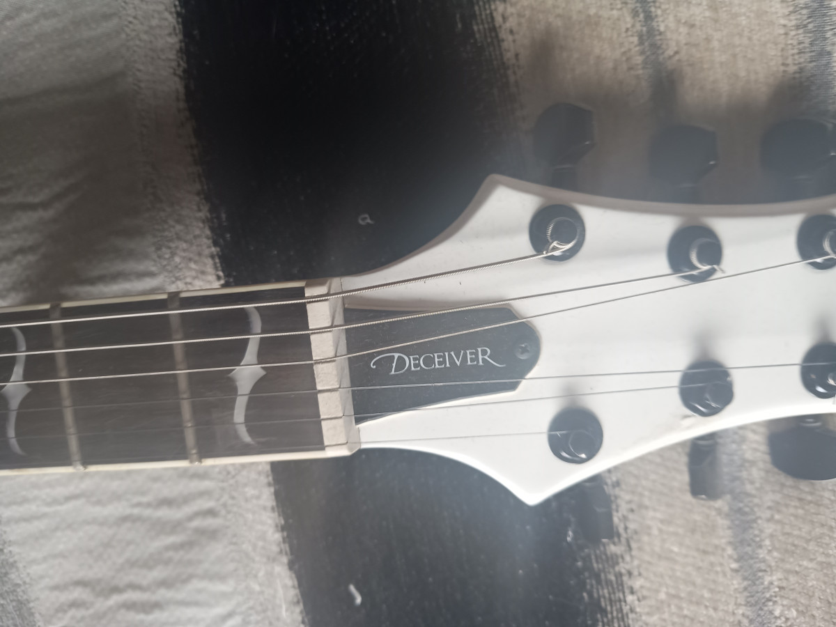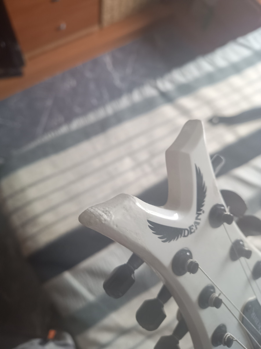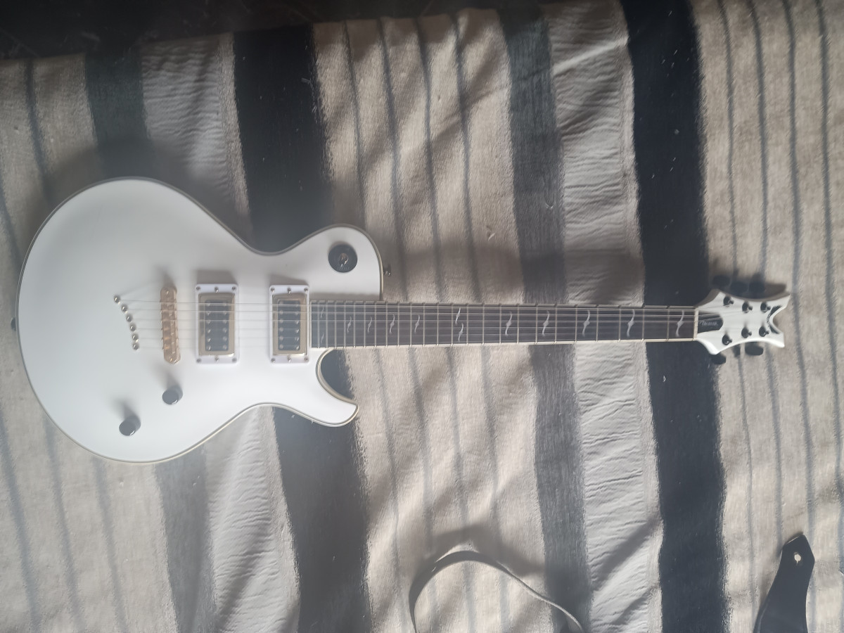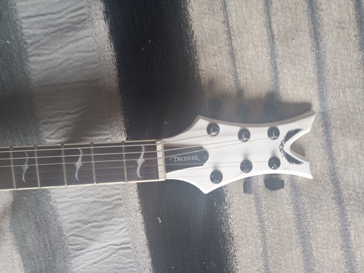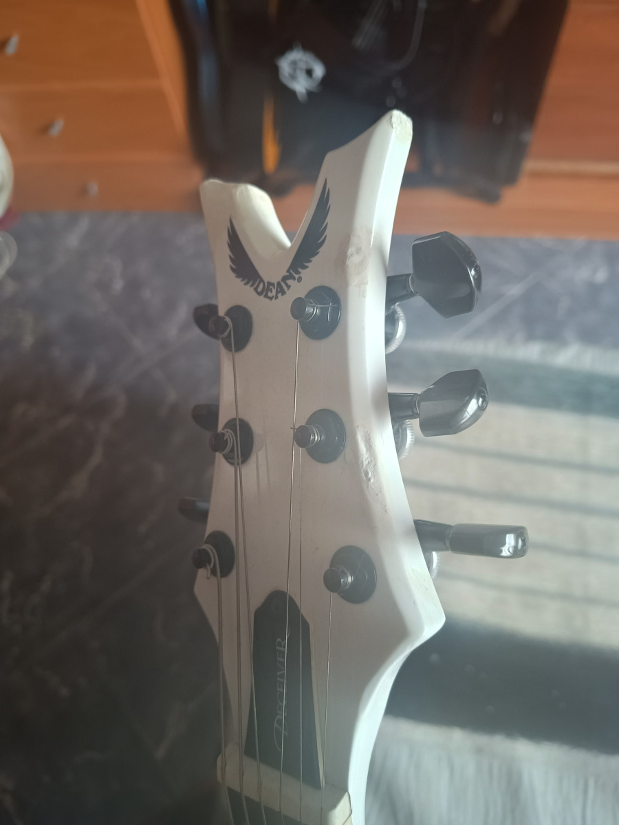 Guitarrón descatalogado , fantástico y muy difícil de conseguir de Dean tipo Les Paul ( la más ligera del mercado) con algunos toques en la pala (se muestran en las fotos) pero el resto está perfecto. Fabricado en la misma planta Koreana que fabrica las LTD Eclipse Deluxe gama Alta