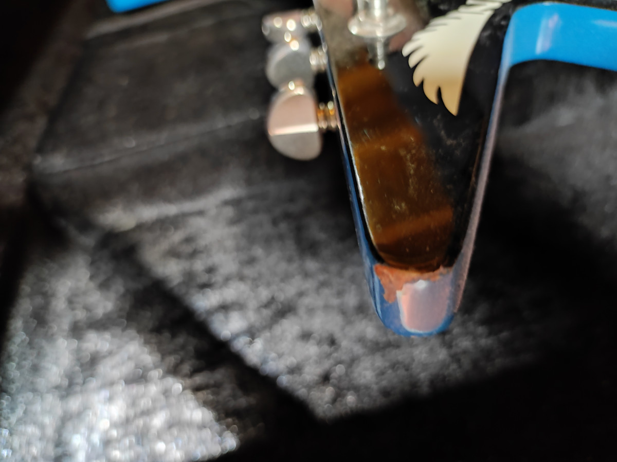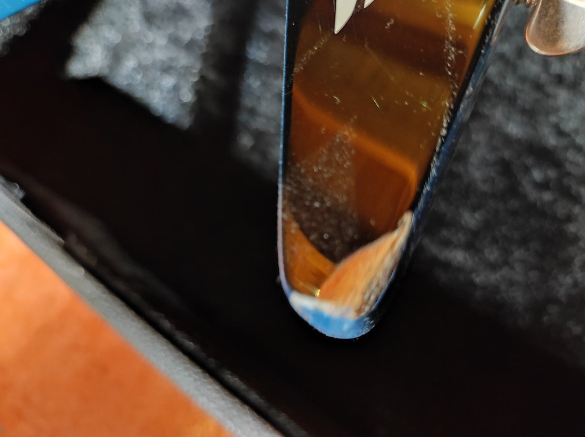 El estado de la guitarra esta bastante bien aunque en las puntas como suele pasar en este tipo de guitarras tiene algunos toques, los mas importantes en las puntas de abajo.