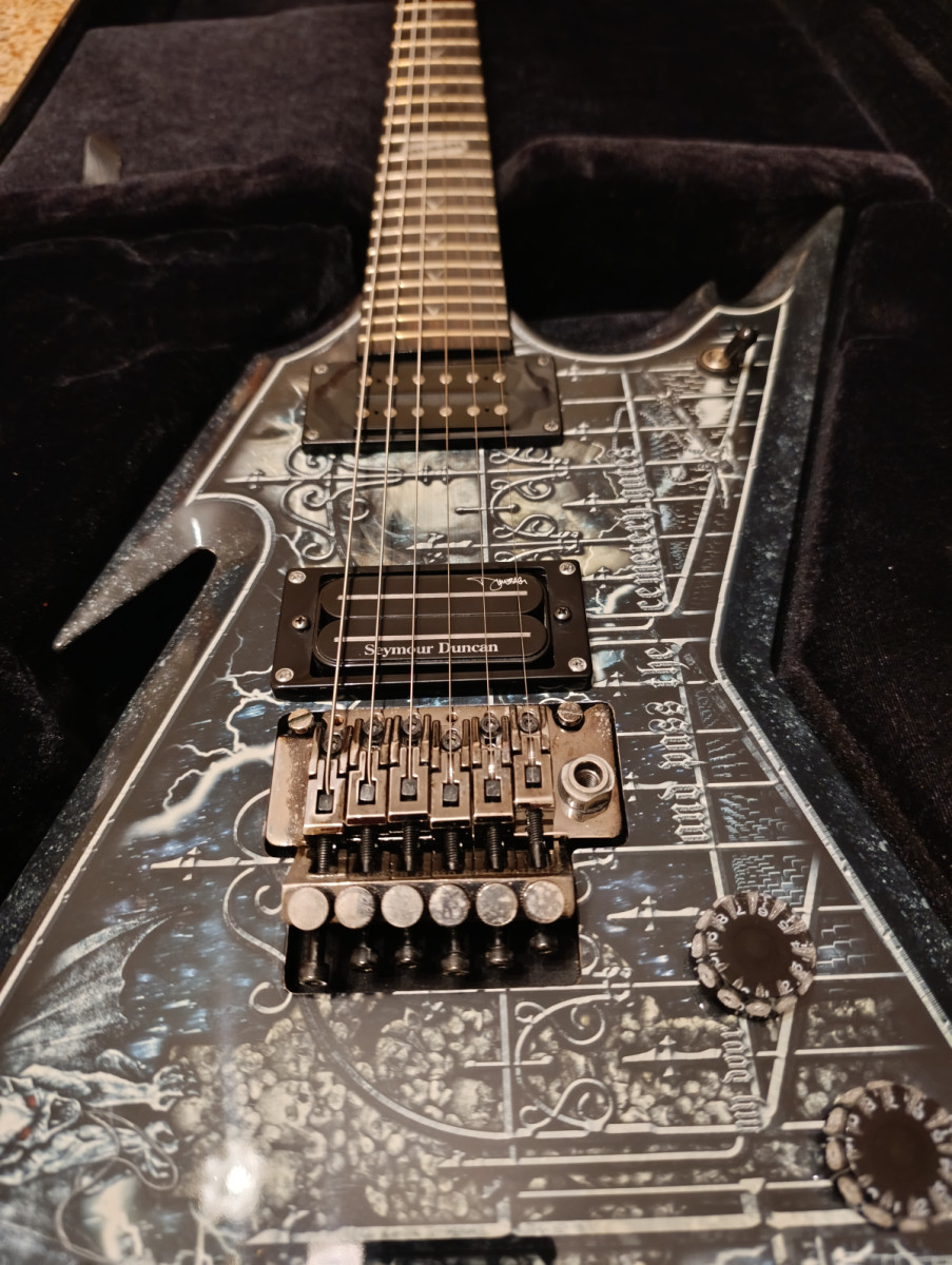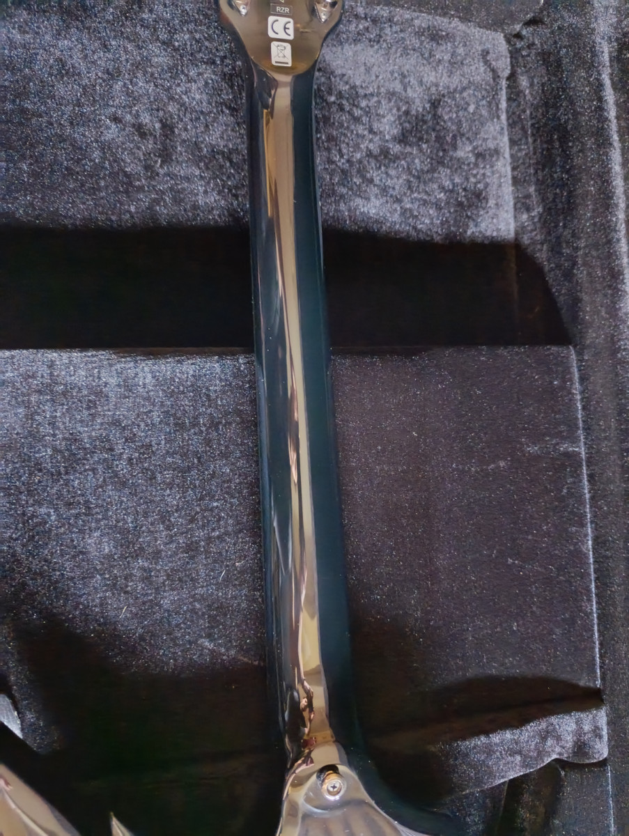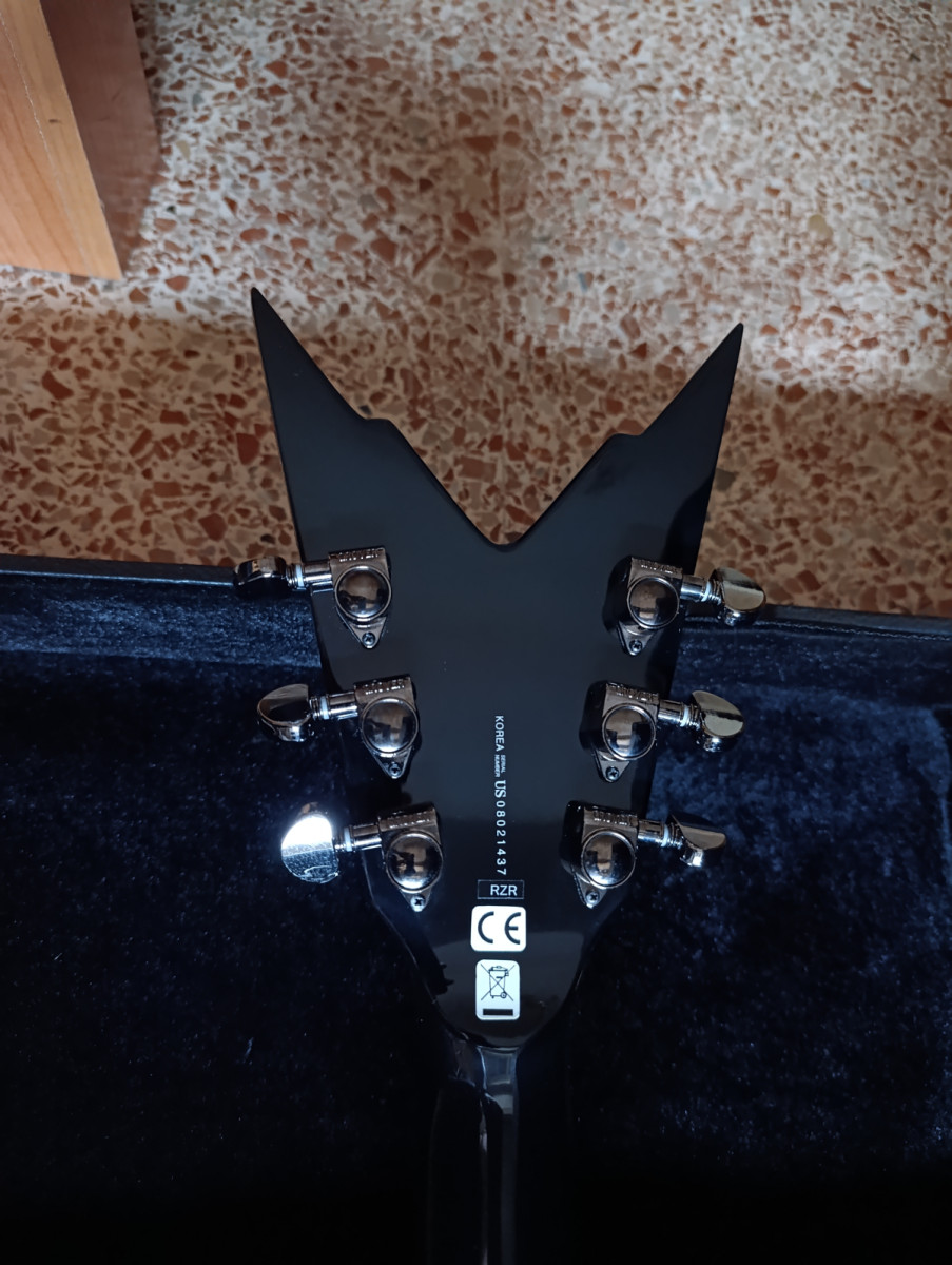 Buenass, saco para cambio/venta esta preciosa guitarra bastante rara de ver , de fabricación Koreana , impoluta y sin un solo golpe, totalmente original y con estuche original de la marca, a excepción del cromado del puente y el Jack de la guitarra que se iban con el tiempo el resto de la guitarra no tiene ningún desgaste, aún conserva algún plástico en las tapas traseras.