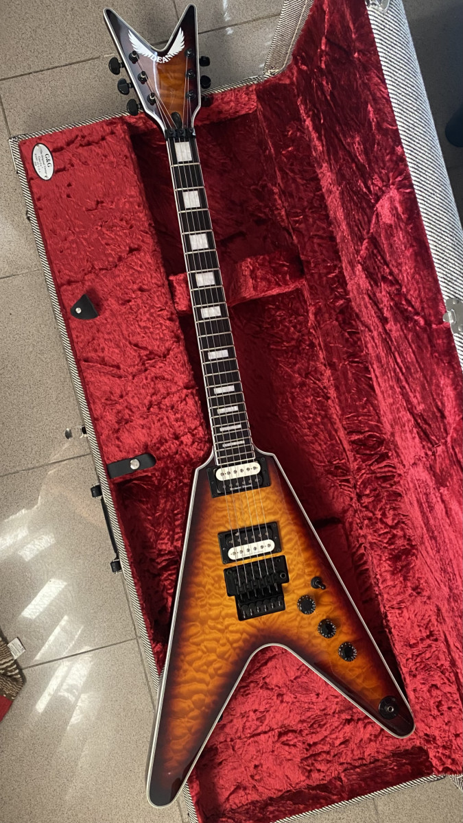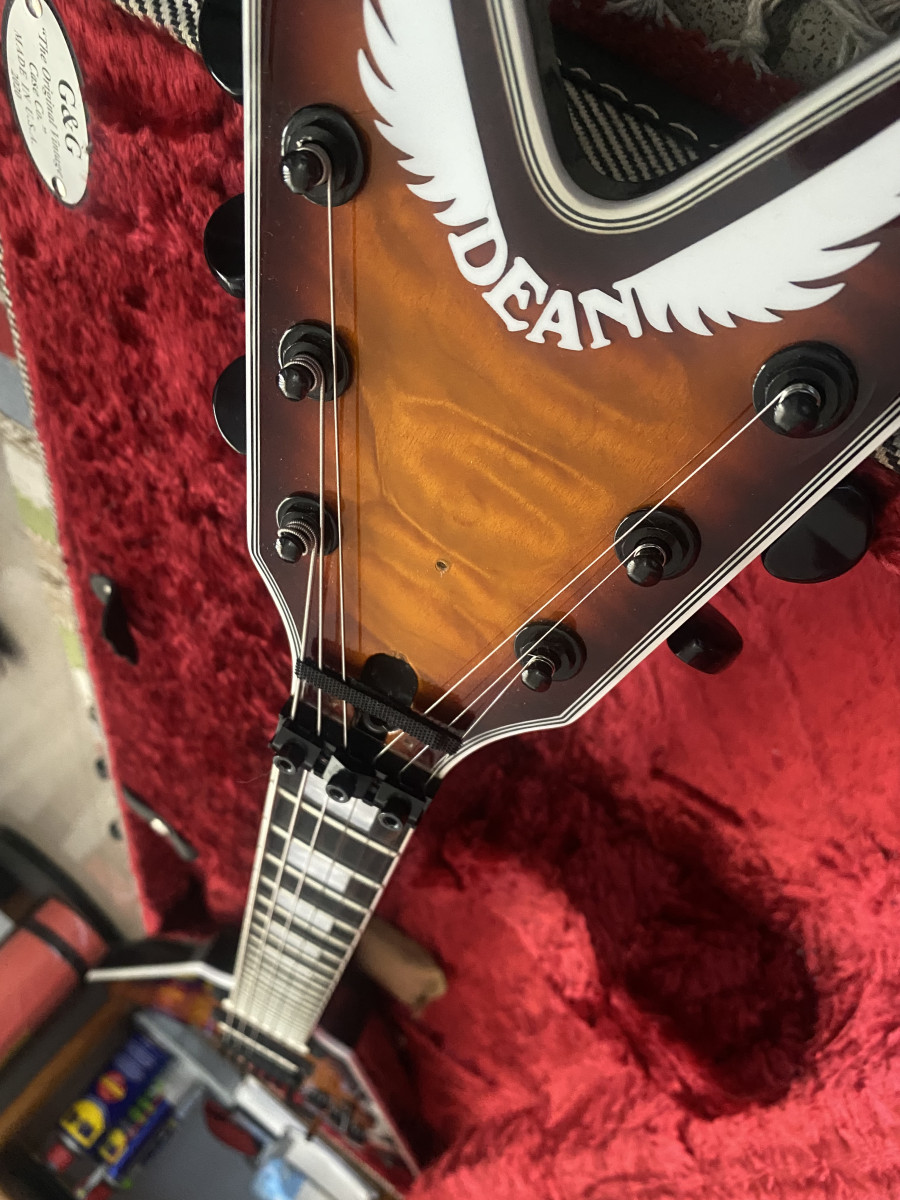 Pongo en venta mi estimada (y descontinuada debido a la demanda por patente de la forma “V” de Gibson a Dean) Dean V Select la cual ha sido bastante estimada, se encuentra en perfecto estado y sin nada a apuntar ni funcional ni cosméticamente, a excepción de que perdí su tapa del Truss Rod.