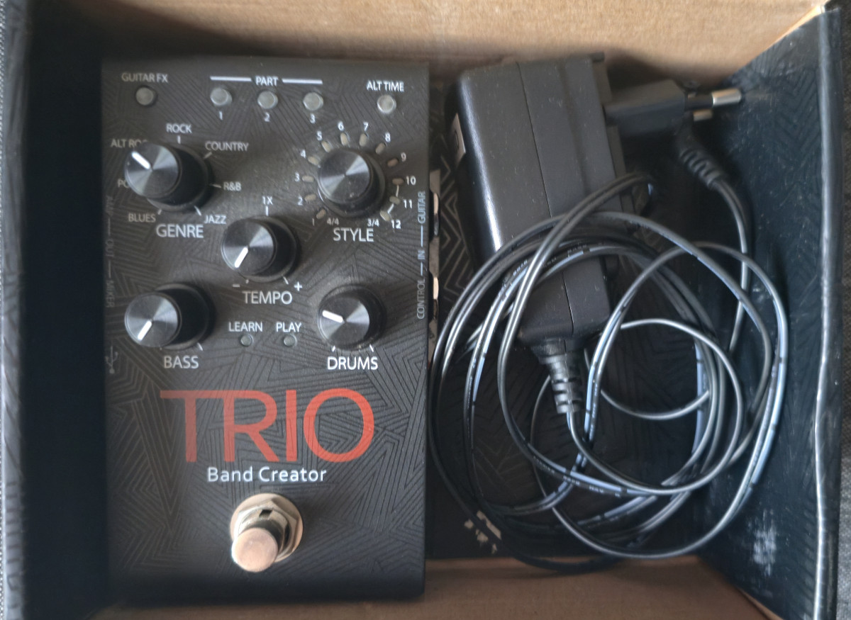 Vendo Digitech TRIO Band Creator, pedal que genera acompañamientos de bajo y batería en tiempo real según lo que toques en la guitarra. Está en perfecto estado de funcionamiento e incluye su fuente de alimentación original.