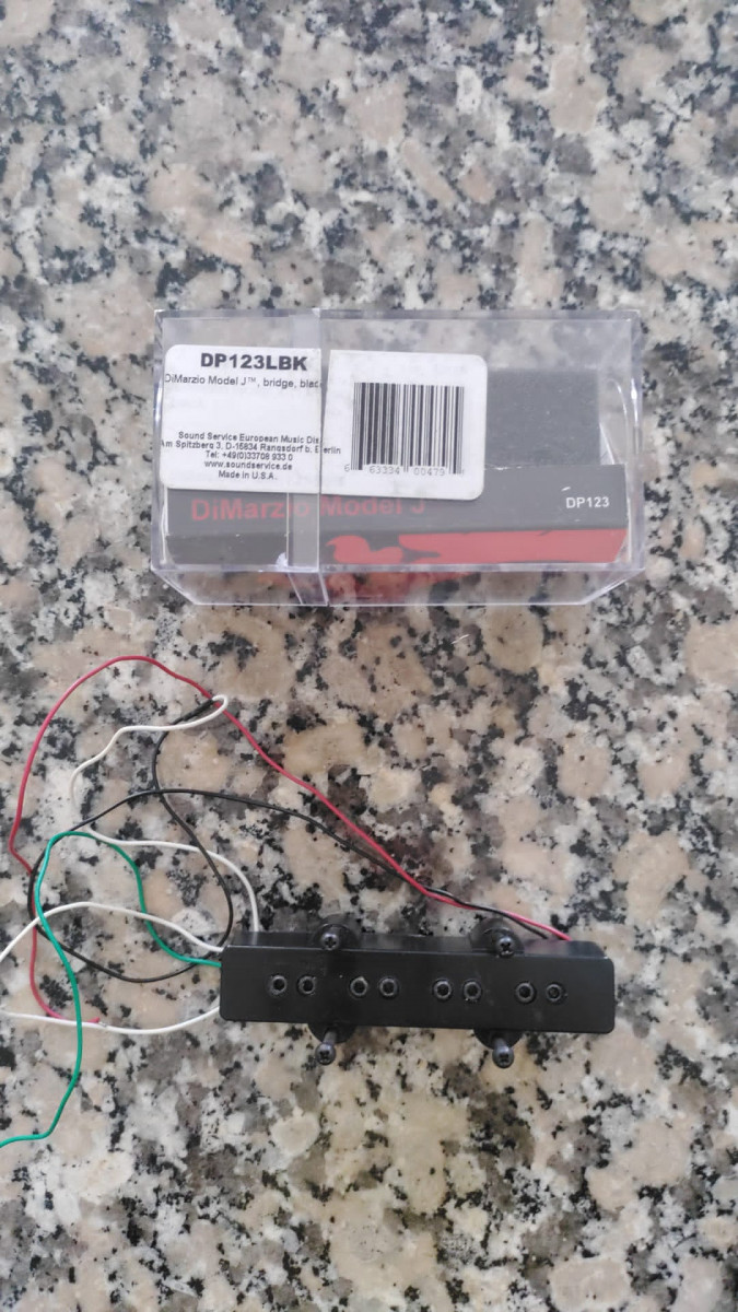 Vendo pastilla para bajo jazzbass Di Marzio DP 123 negra. para posición puente. Pastilla con cuatro hilos y cancelación de ruído. Sonido potente y equilibrado. Incluye tornillos y caja original.