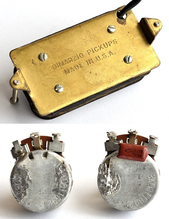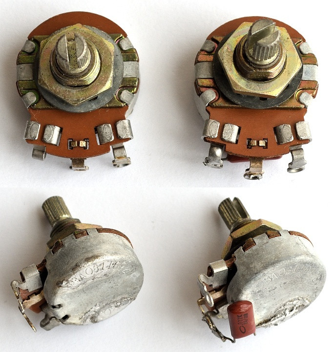 Los dos potenciómetros CENTRALAB también son de los años 80, miden 520 kΩ y 535 kΩ, pero puede haber crujidos desconocidos u otros problemas que los hagan inutilizables, por lo que los potenciómetros son solo un extra.