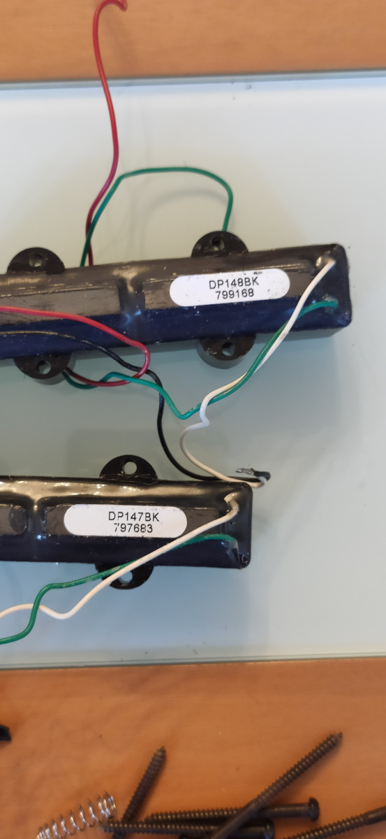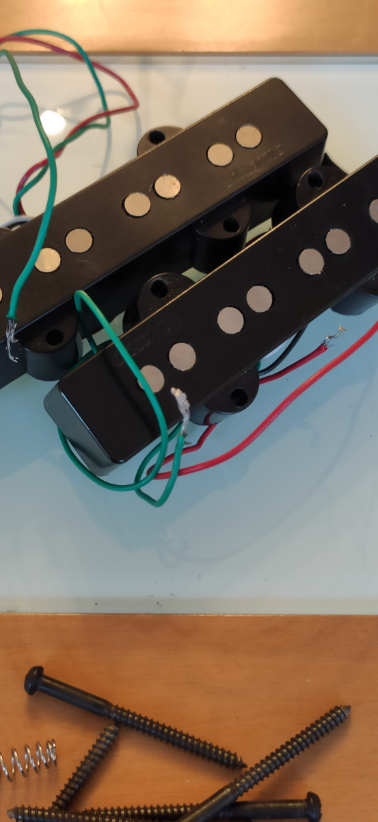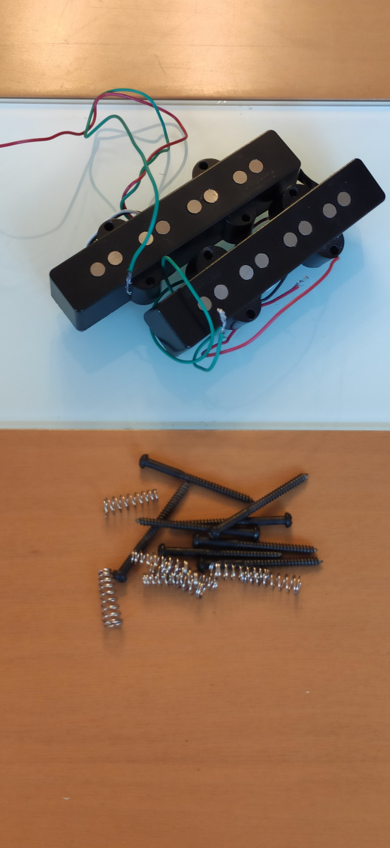 Autentico sonido jazz bass con cancelación de ruido y amplia gama de tonos. Graves profundos, agudos percusivos y medios redondos y nítidos. Cables intactos. Incluye tornillos y muelles. Solo usadas en homestudio. No vendo por separado. No me interesan cambios.