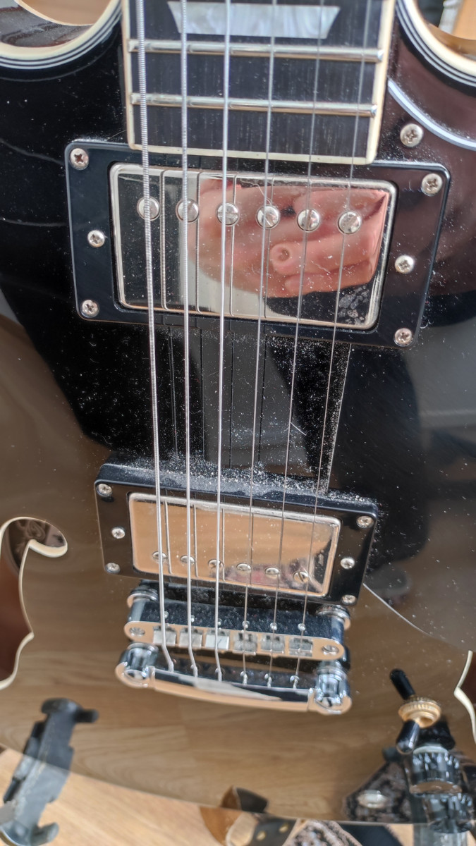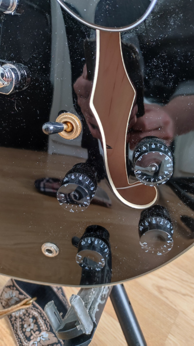 Después le cambió TODA LA ELECTRÓNCIA, potes gotoh, jack switchcraft y le cambiamos el interruptor por uno goldo de los caros que tenía yo por casa de una teleca custom.