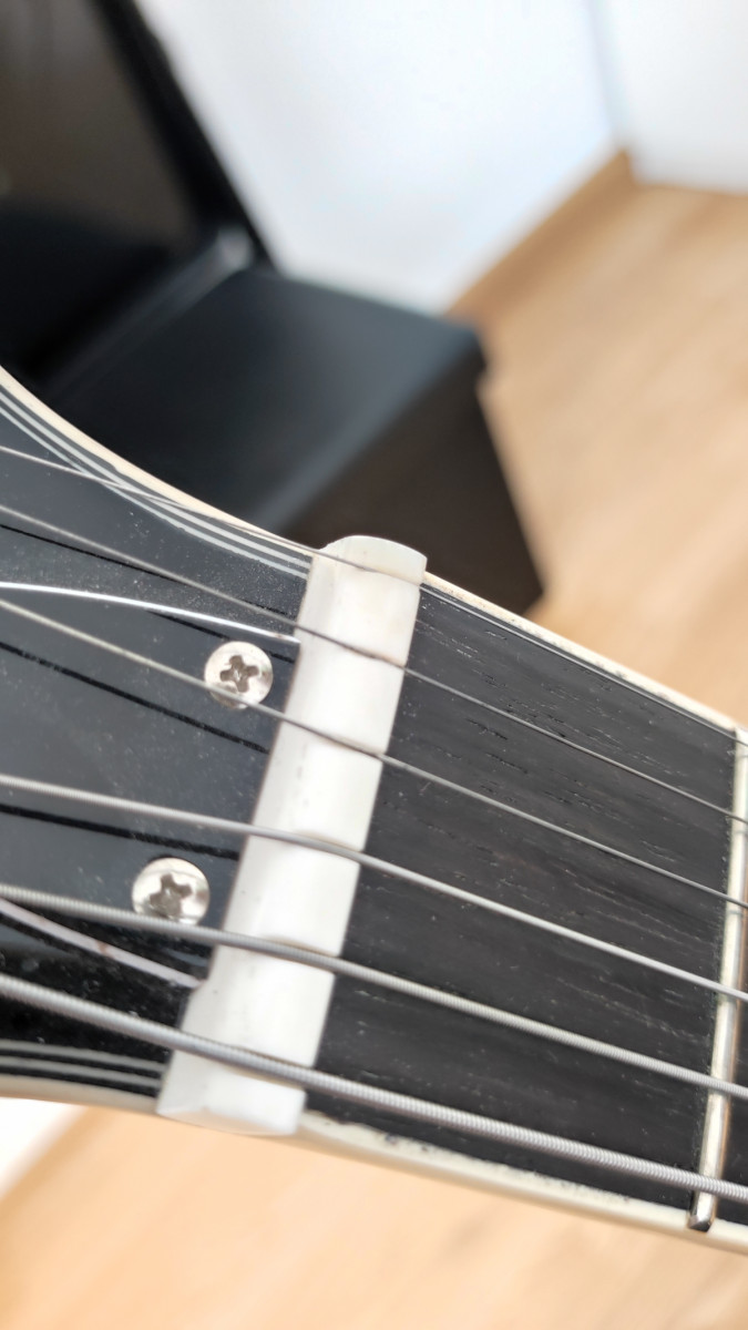 Lo primero que hice fue llevar a nivelar los trastes a un luthier profesional y a ponerle una cejuela de hueso a medida, pues la que traía era bastante feucha y de plástico. El luthier es este https://baladocustom.com/