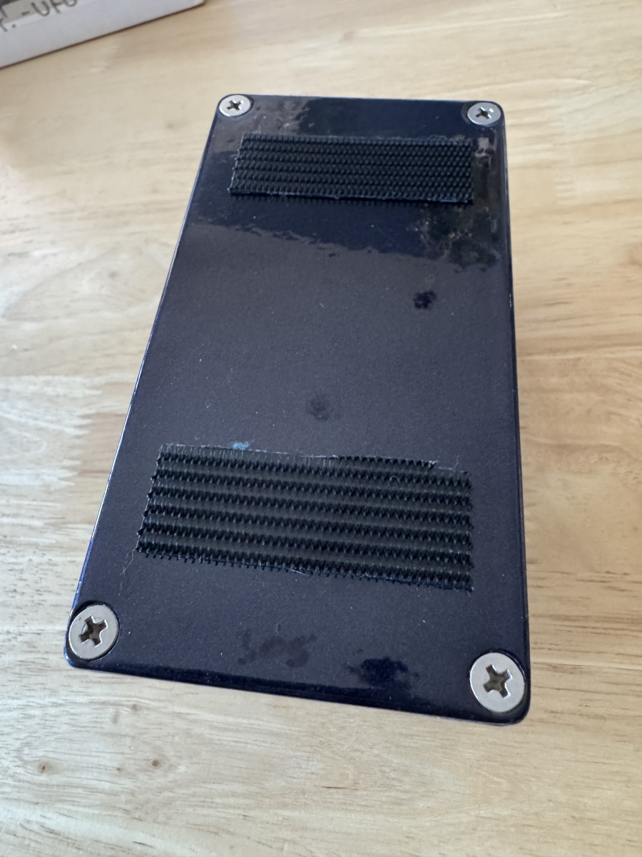 Con caja, manual y hasta pegatina. Velcro en la base.