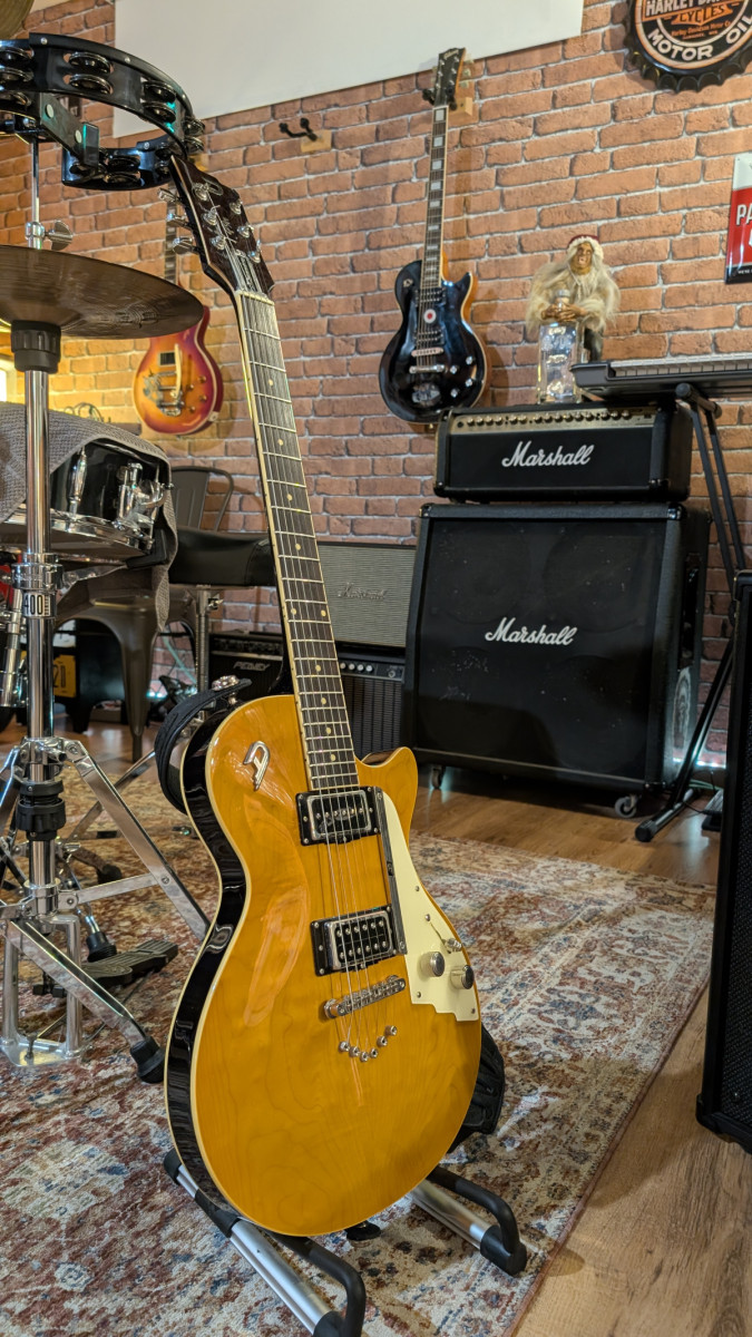 Tipo les Paul pero con mástil cómodo tipo strato... una maravilla en todos los sentidos.