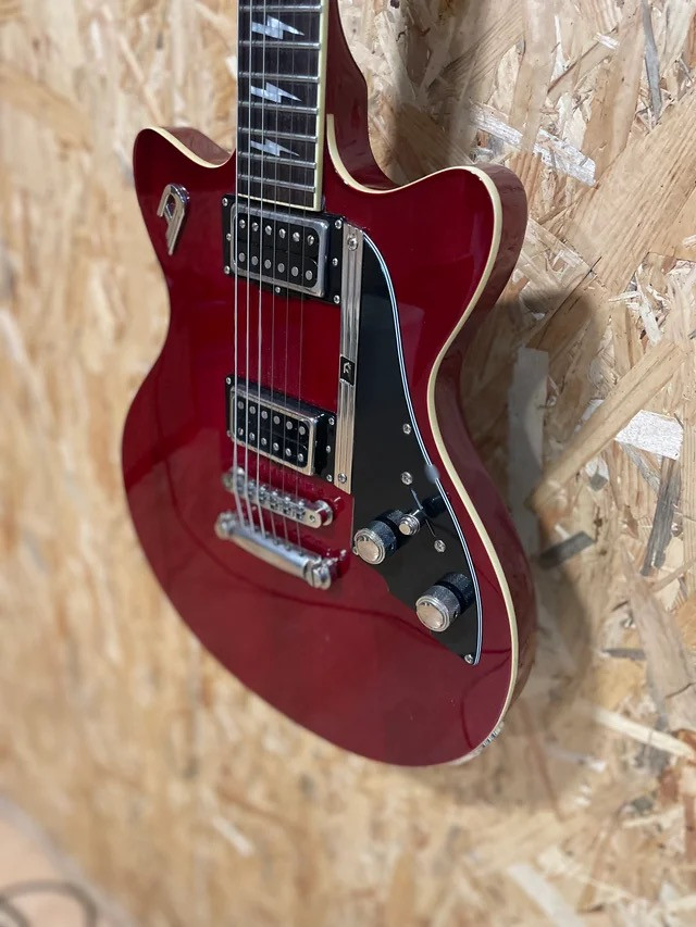 Guitarra eléctrica Duesenberg Bonneville en un precioso color Cherry Red. Excelente calidad en acabados y sonido. Si conoces la marca Duesenberg, poco más hay que añadir. Pesa solamente 3,2 Kg, tu espalda te lo agradecerá.