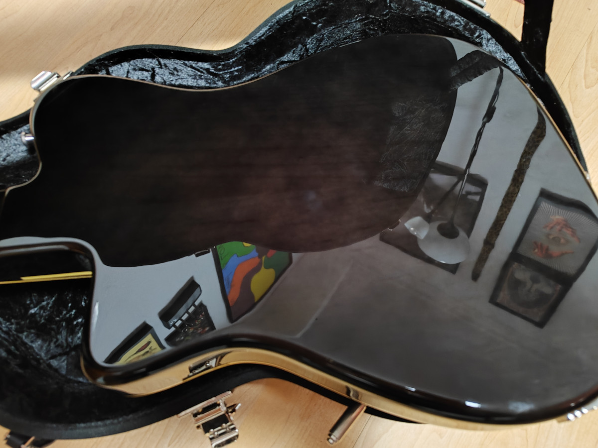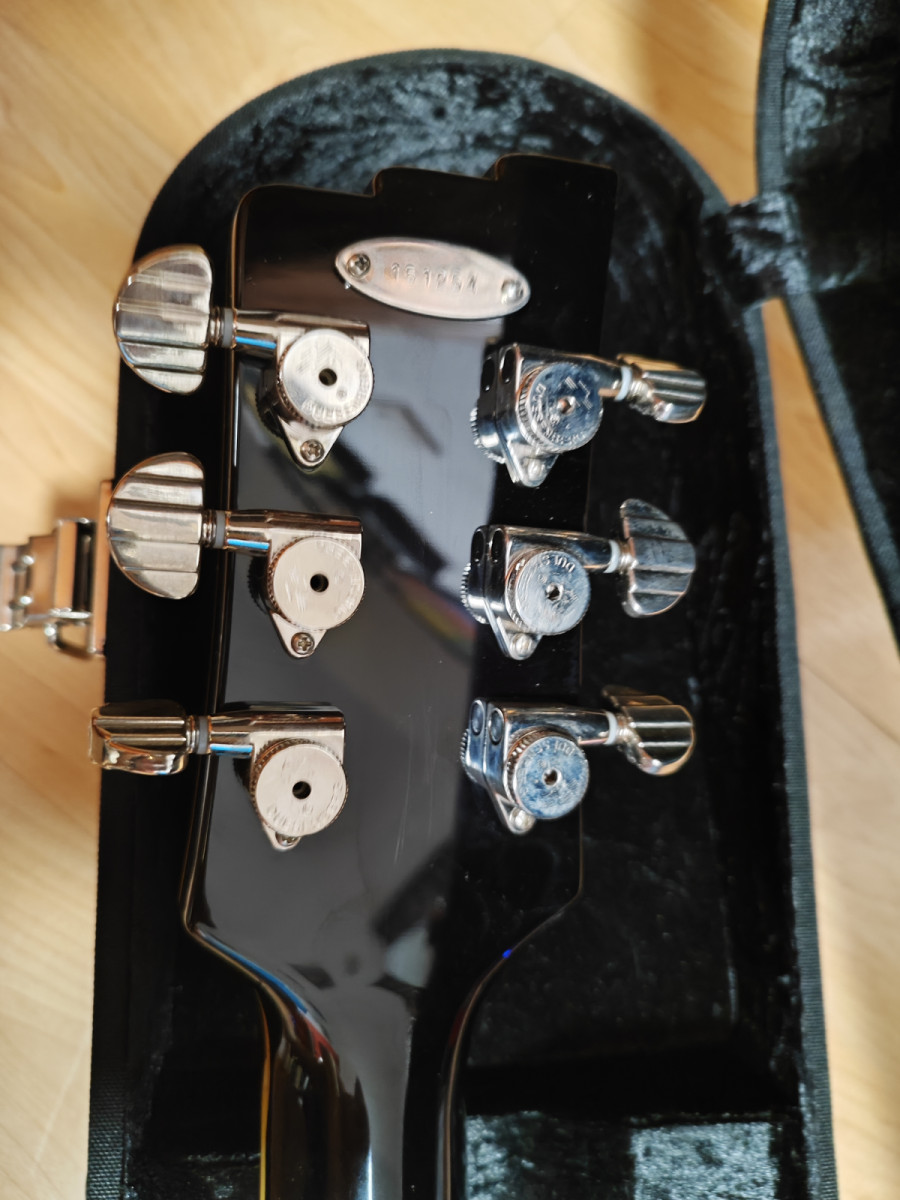 Está en estado de revista, como se puede ver, y para tocar está de escándalo, pasada por luthier hace un par de meses. De trastes está muy bien también. Los cromados han perdido un poco de brillo y tiene un par de marcas pequeñitas, nada raro.