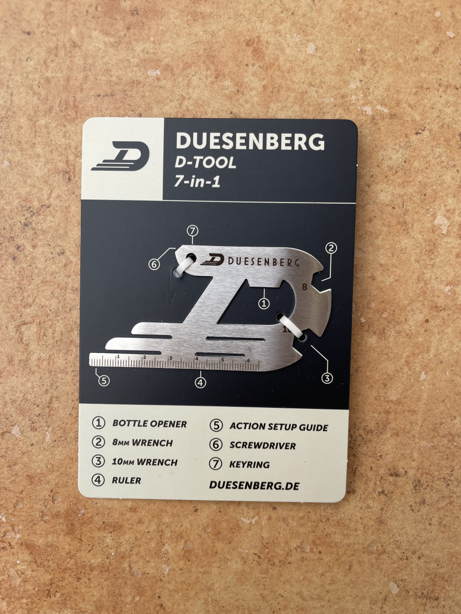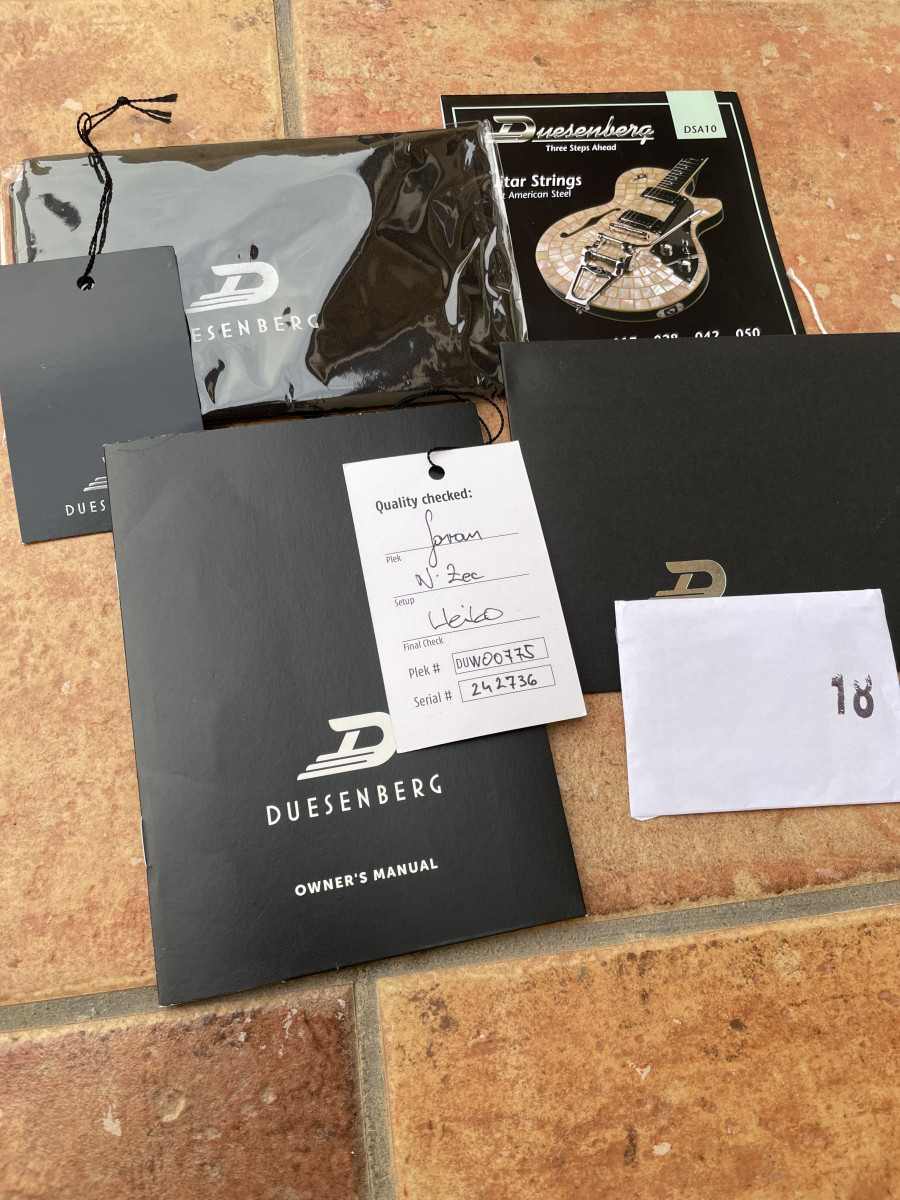 El estado de la guitarra es impecable, al igual que el del estuche original Duesenberg, ya que se compró nueva en tienda en diciembre de 2024 y la he tenido "entre algodones". Sus especificaciones técnicas se pueden consultar en la página web de Duesenberg Guitars.